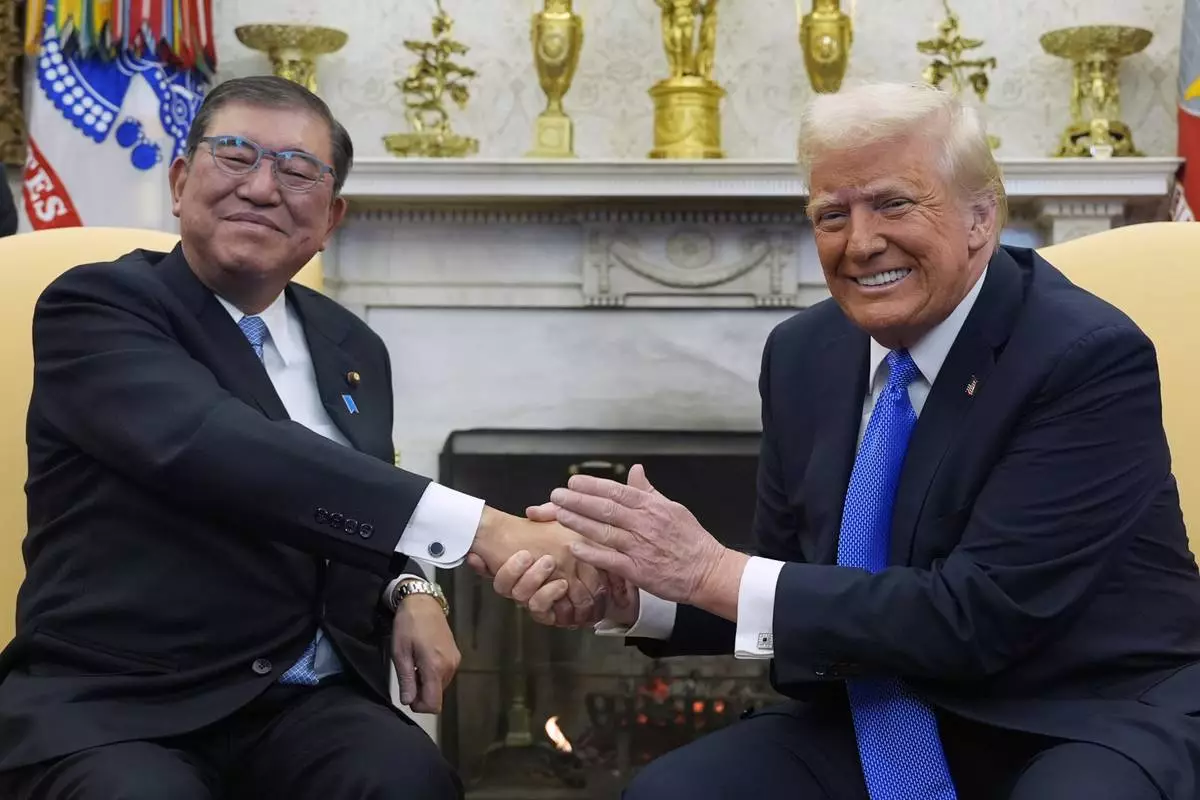 President Donald Trump meets with Japanese Prime Minister Shigeru Ishiba in the Oval Office of the White House, Friday, Feb. 7, 2025, in Washington. (AP Photo/Alex Brandon)