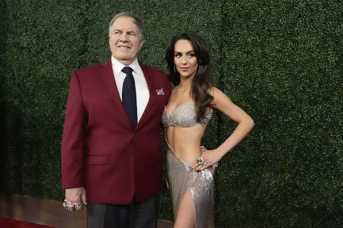 Former NFL head coach Bill Belichick and girlfriend Jordon Hudson, pose on the red carpet at the NFL Honors award show ahead of the Super Bowl 59 football game, Thursday, Feb. 6, 2025, in New Orleans. (AP Photo/Brynn Anderson)