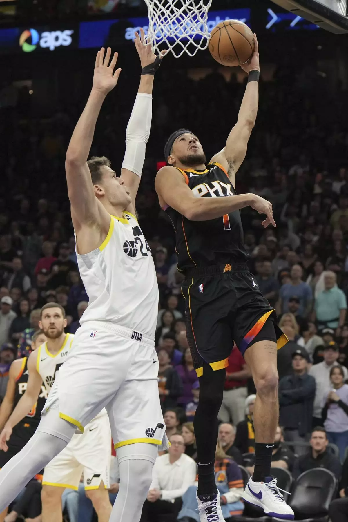 PHOENIX (AP) — Devin Booker scored a season-high 47 points, Grayson Allen hit a 3-pointer at the buzzer to force overtime and the short-handed Phoenix Suns rallied to beat the Utah Jazz 135-127 on Friday night.