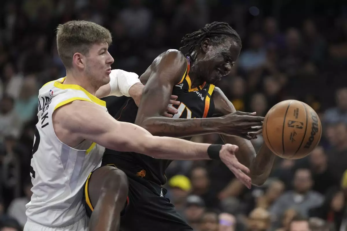 Bol Bol hit a 3-pointer with 8.8 seconds left in the second quarter to push Phoenix into a 55-all tie at halftime. Booker scored 22 points before the break on 8-of-12 shooting.