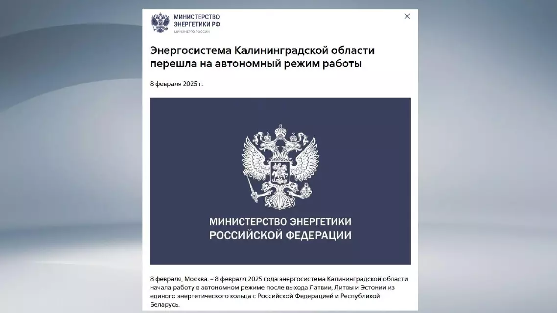 The Kaliningrad Region of Russia has now switched to an autonomous energy operation mode.