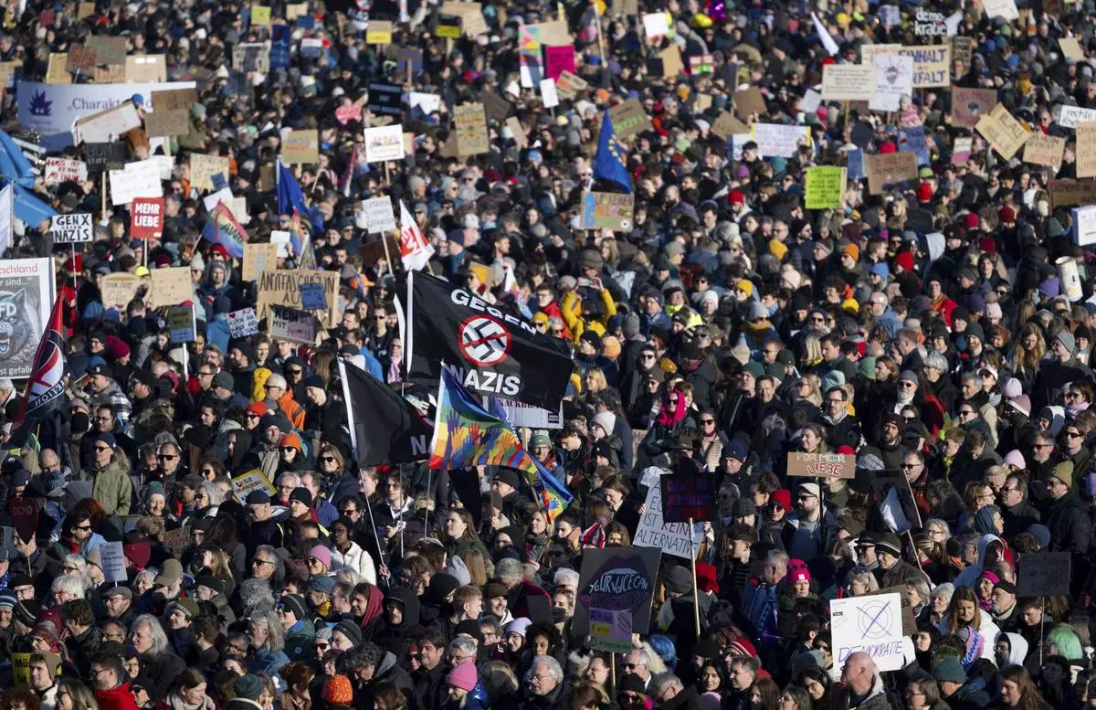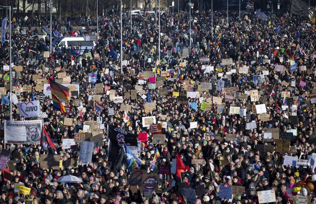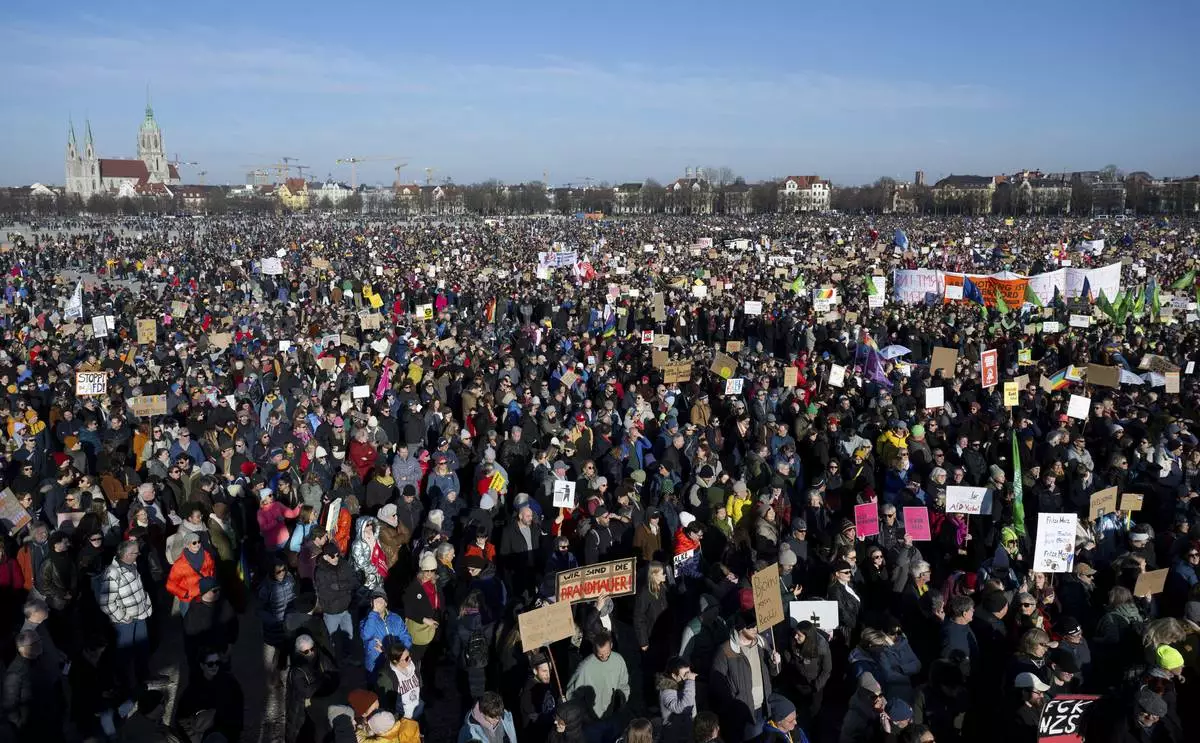 MUNICH, Germany (AP) — More than 200,000 protesters rallied in Munich, Germany, on Saturday against far-right extremism ahead of the country's general election.