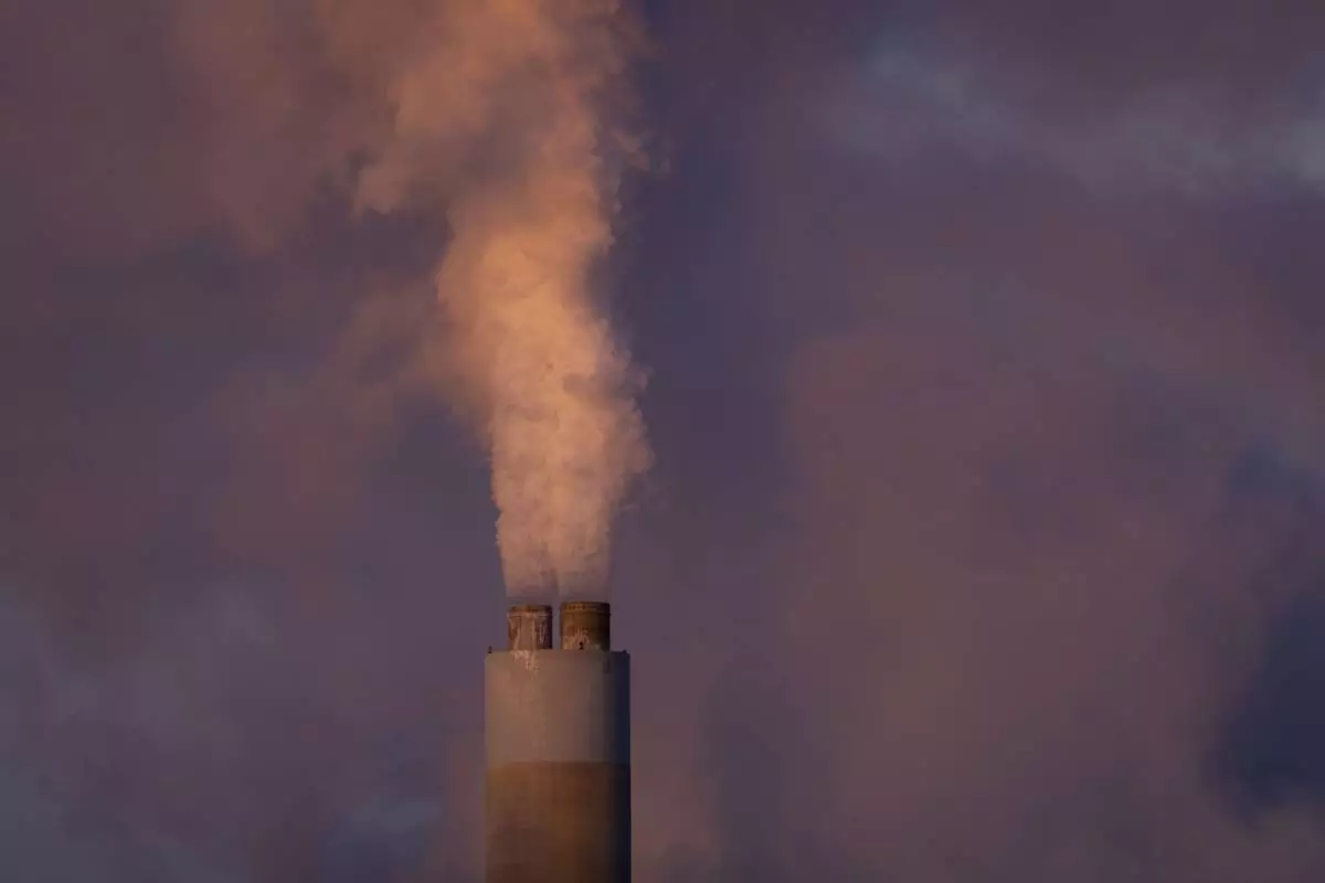 FILE - Carbon dioxide and other pollutant billows from a stack at PacifiCorp’s coal-fired Naughton Power Plant, near where Bill Gates company, TerraPower plans to build an advanced, nontraditional nuclear reactor, Jan. 13, 2022, in Kemmerer, Wyo. (AP Photo/Natalie Behring, File)