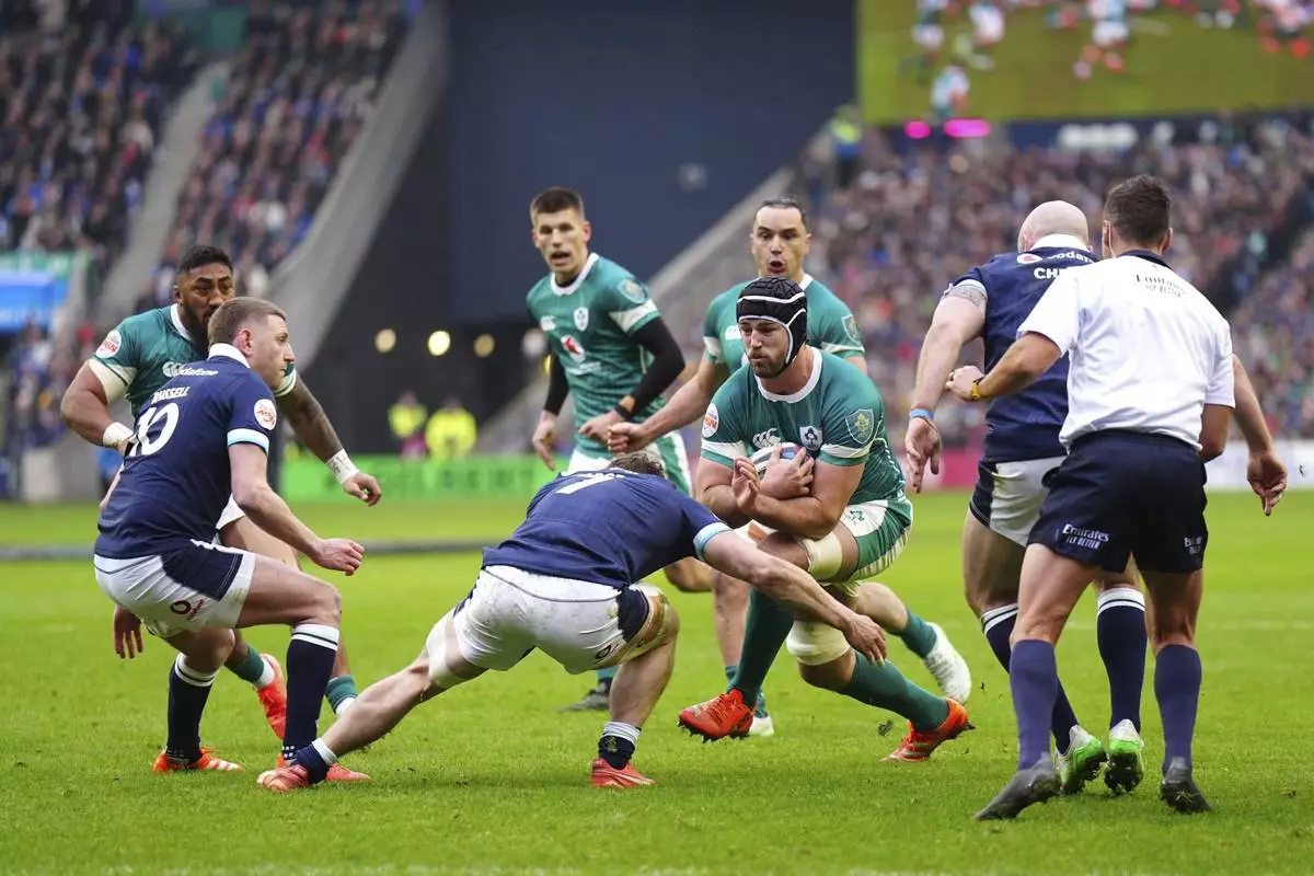 EDINBURGH, Scotland (AP) — Scotland rugby players Darcy Graham and Finn Russell were involved in a nasty-looking clash of heads and were unable to continue during a Six Nations match against Ireland on Sunday.