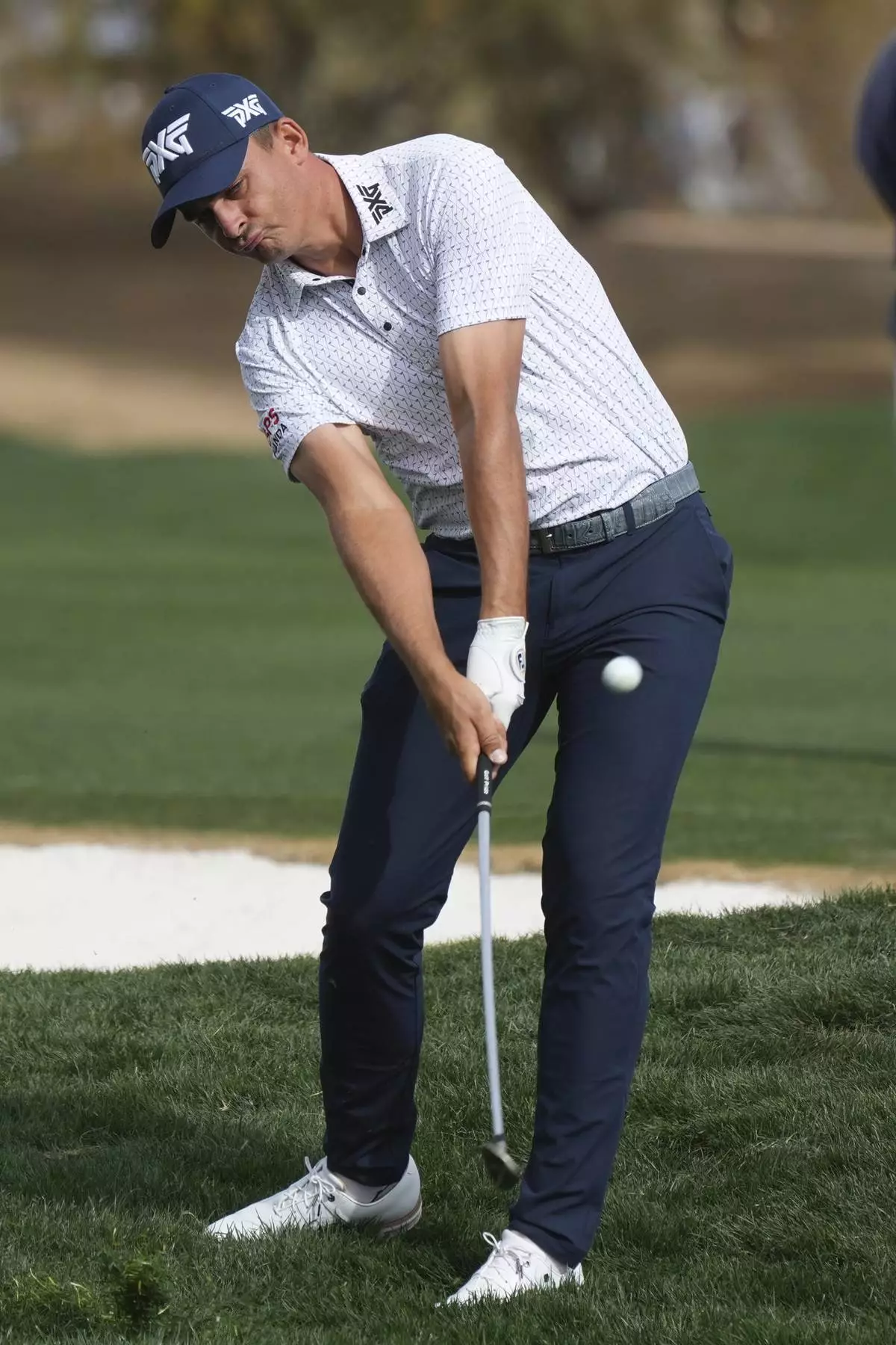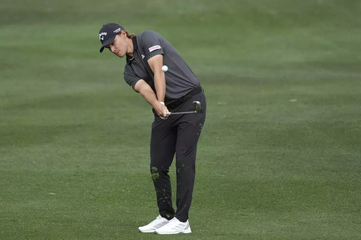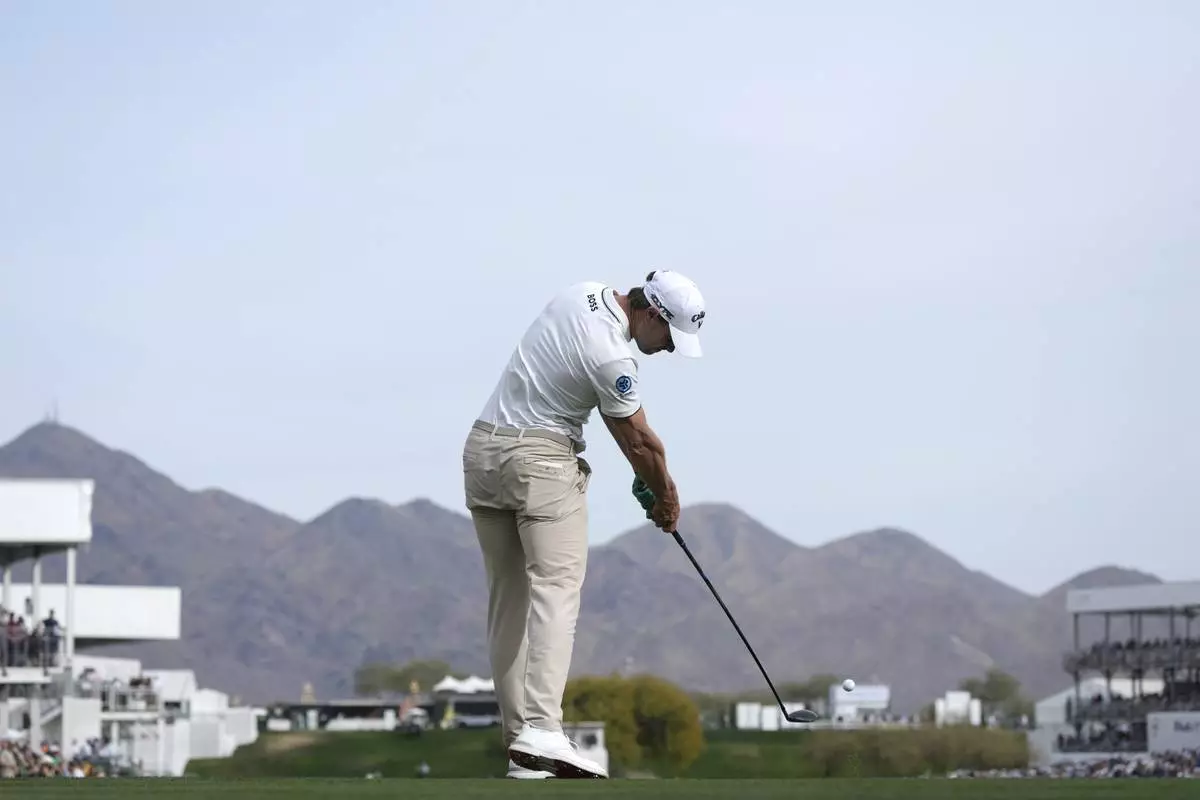 Christiaan Bezuidenhout, of South Africa, hits his approach shot on the second hole during the final round of the Phoenix Open golf tournament at TPC Scottsdale, Sunday, Feb. 9, 2025, in Scottsdale, Ariz. (AP Photo/Ross D. Franklin)