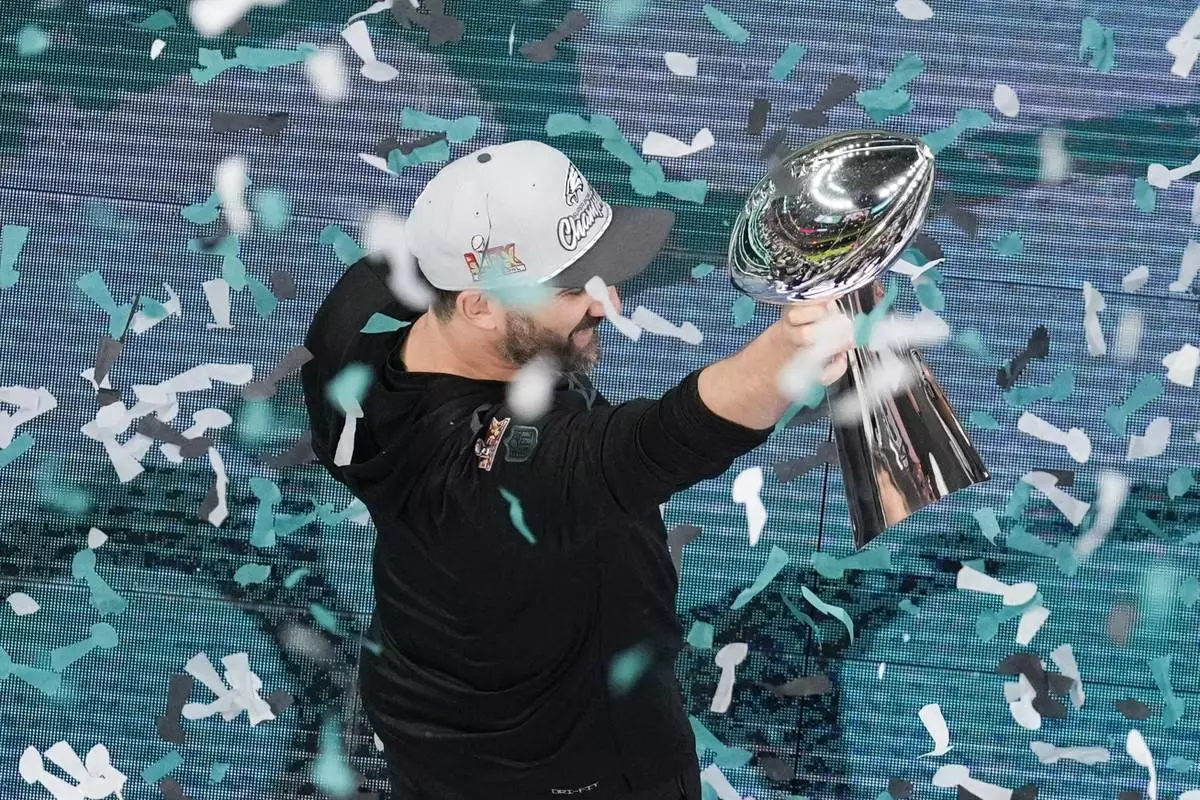 Philadelphia Eagles head coach Nick Sirianni holds the Vince Lombardi Trophy after the Eagles won the NFL Super Bowl 59 football game against the Kansas City Chiefs, Sunday, Feb. 9, 2025, in New Orleans. (AP Photo/David J. Phillip)