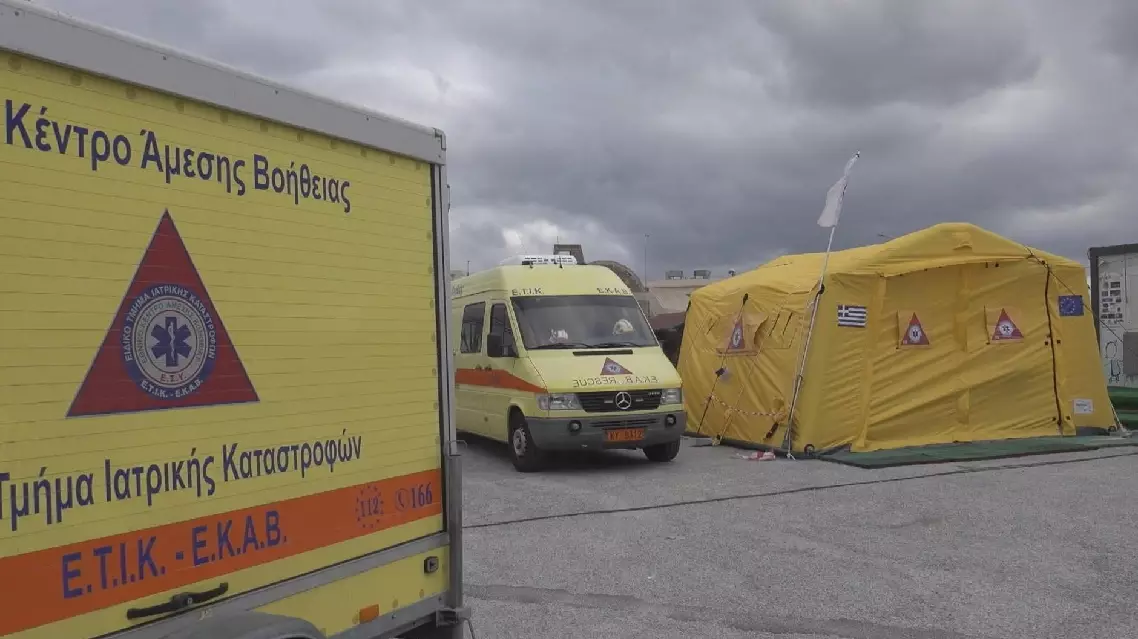 To address the situation, hospitals and medical centers stay ready on Santorini, and emergency tents have been set up outside.