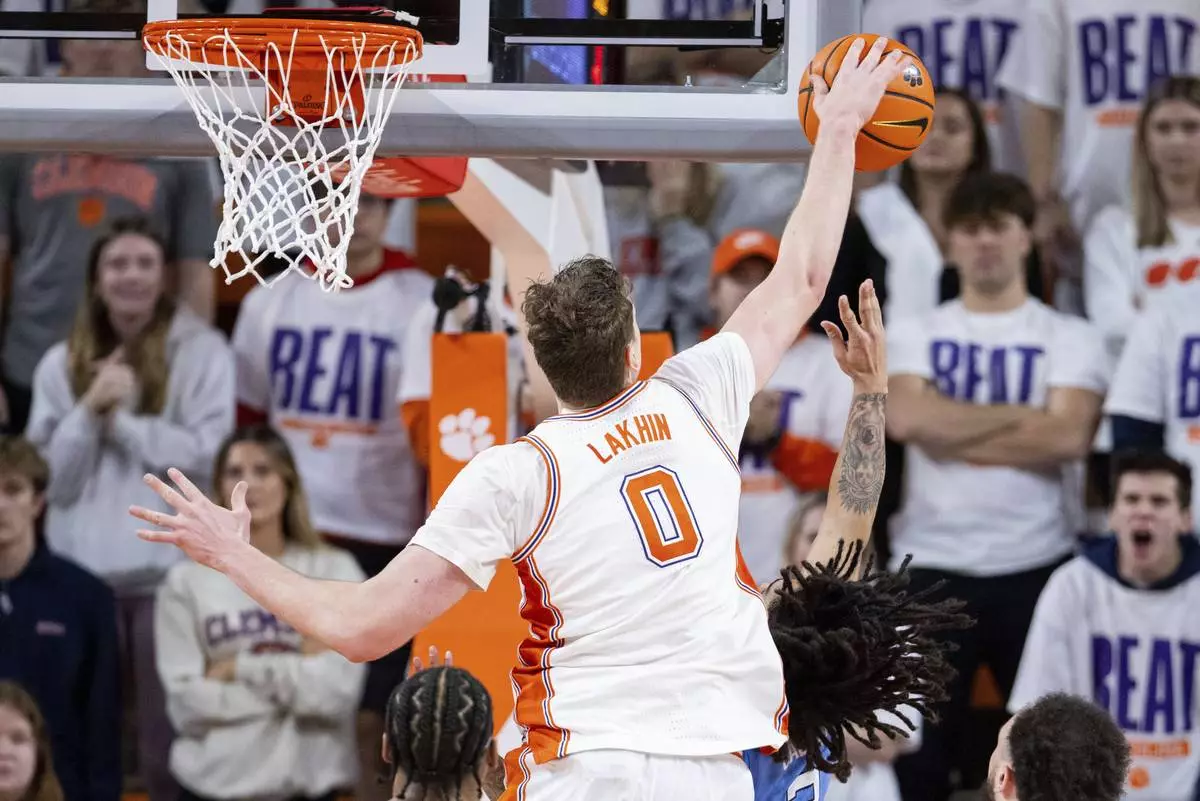 CLEMSON, S.C. (AP) — Viktor Lakhin scored 22 points, including a season-best four 3-pointers, and No. 23 Clemson rolled past North Carolina 85-65 on Monday night.