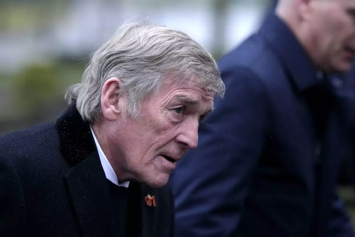 Kenny Dalglish arrives at Manchester Cathedral for the funeral of former Manchester United, Manchester City and Scotland forward Denis Law, in Manchester, England, Tuesday, Feb. 11, 2025. (Martin Rickett/PA via AP)