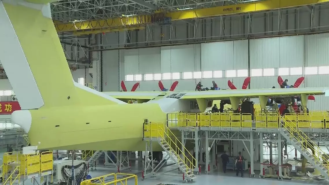 Production of three upgraded AG600 aircraft is in full swing at an assembly plant in Zhuhai City, south China's Guangdong Province. During the Spring Festival holiday, the plant continued operation, with more than 300 people working intensively to finalize assembly, testing, and fine-tuning of the planes.