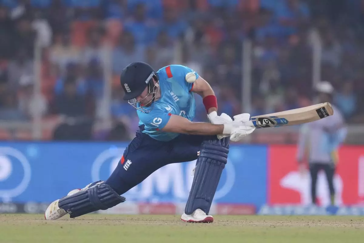 England's Liam Livingstone plays a shot during the third one day international cricket match between India and England in Ahmedabad, India, Wednesday, Feb. 12, 2025. (AP Photo/ Ajit Solanki )