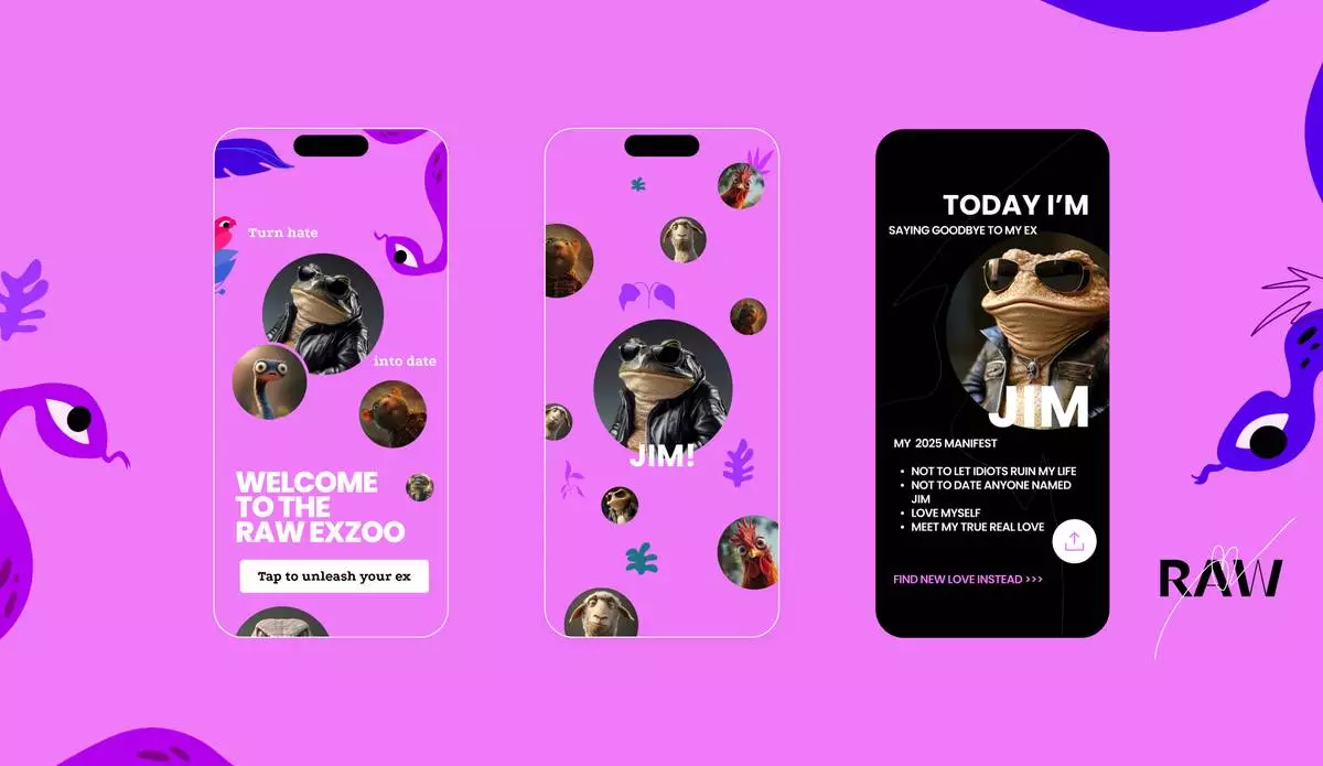 RAW dating app is bringing ExZoo —a digital menagerie where you can let go of your ex by turning them into the animal they truly are (a snake? a cockroach? orangutan? your call) and open yourself up to finding real love.