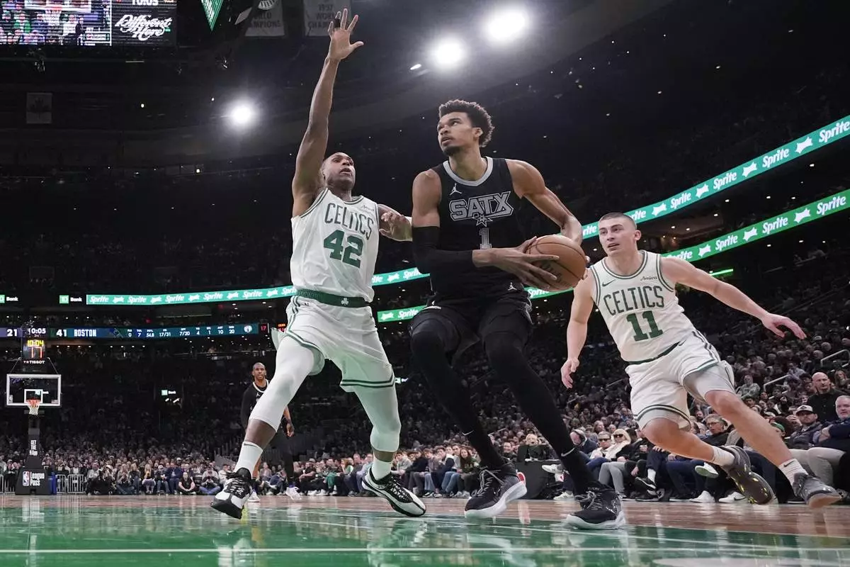 With Boston leading 105-91 in the fourth quarter, Porzingis was double-teamed by Wembanyama and Fox and flipped a no-look, over the head pass to Al Horford, who passed to Sam Hauser for a long jumper.