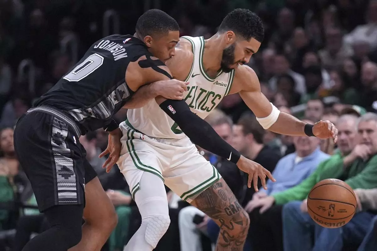 BOSTON (AP) — Jayson Tatum had 32 points and 14 rebounds and the Boston Celtics beat the San Antonio Spurs 116-103 on Wednesday night for their third straight victory and seventh in eight games.