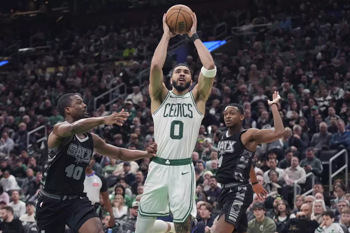BOSTON (AP) — Jayson Tatum had 32 points and 14 rebounds and the Boston Celtics beat the San Antonio Spurs 116-103 on Wednesday night for their third straight victory and seventh in eight games.