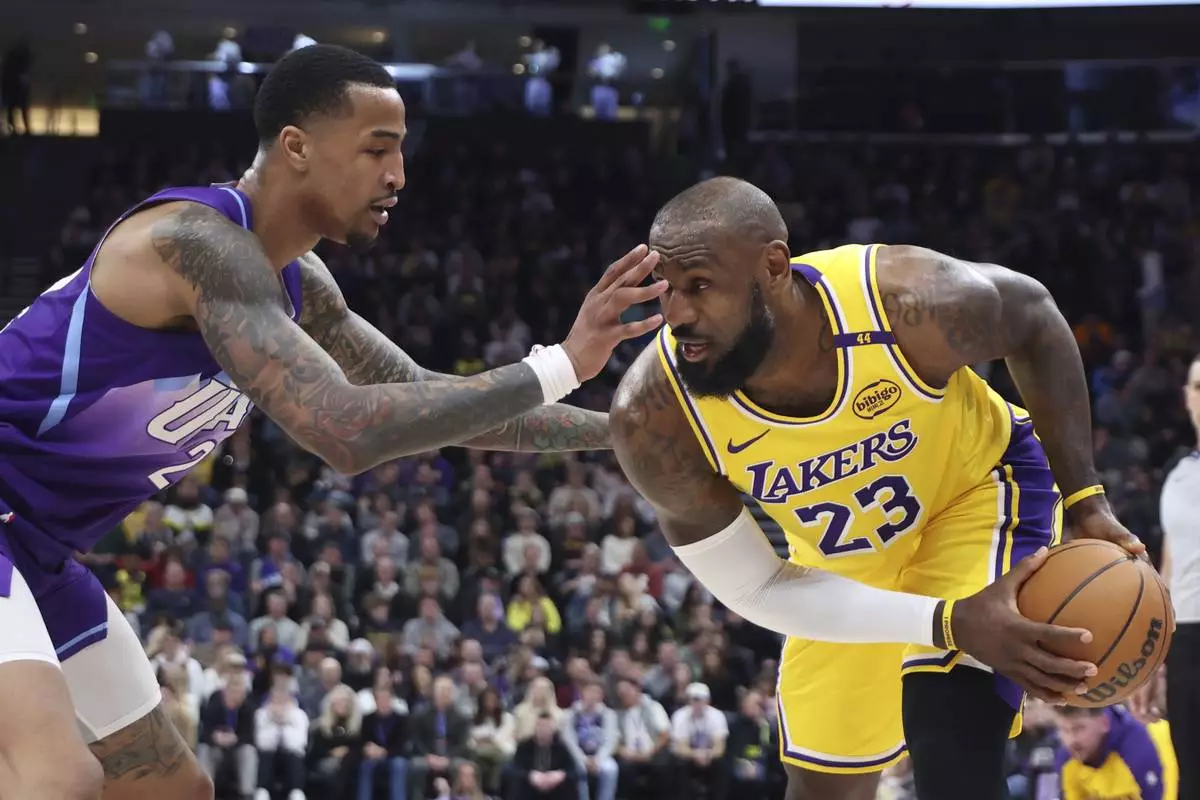 James and Reaves made back-to-back 3s off consecutive Jazz turnovers to cut the deficit to 74-69. The Lakers drew no closer.