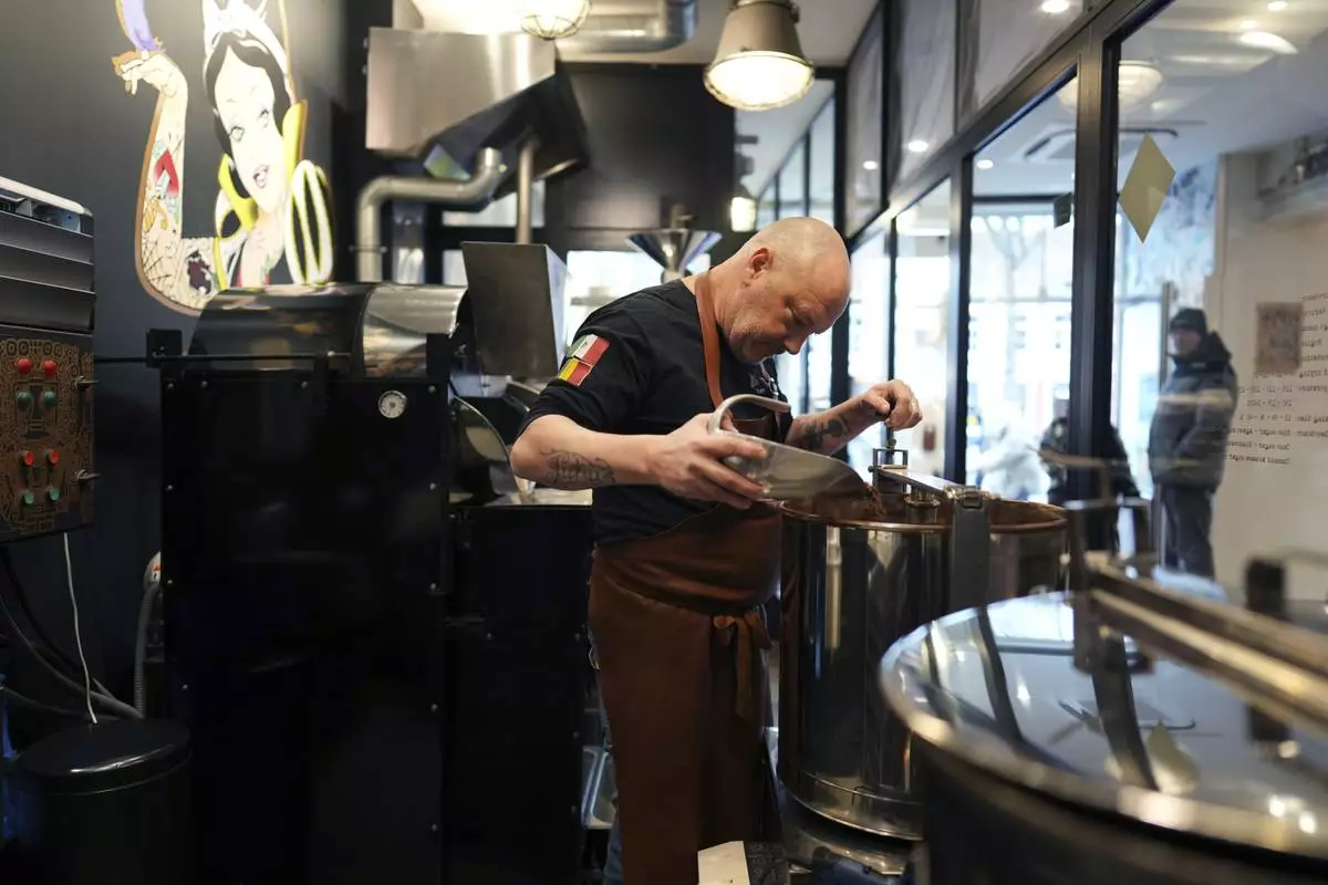 Artisan chocolatier Dominique Persoone pours cocoa beans in a machine in his workshop at The Chocolate Line in Bruges, Belgium, Thursday, Feb. 6, 2025. (AP Photo/Virginia Mayo)