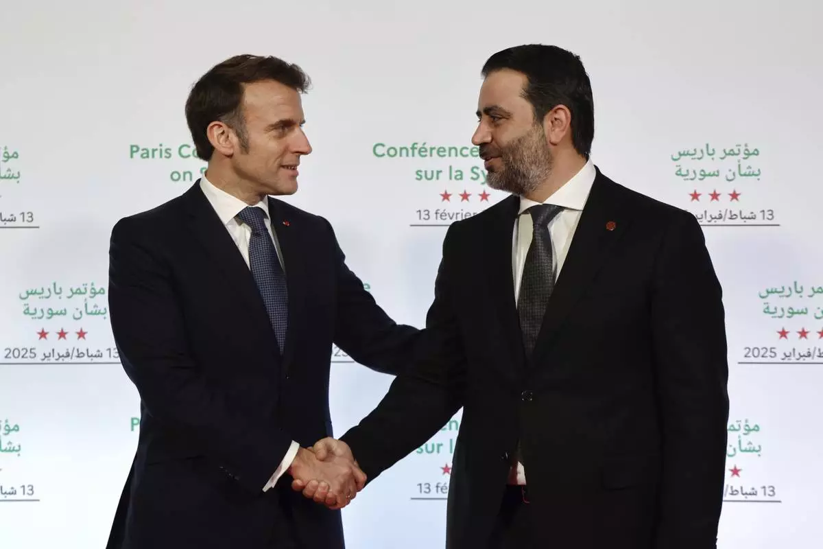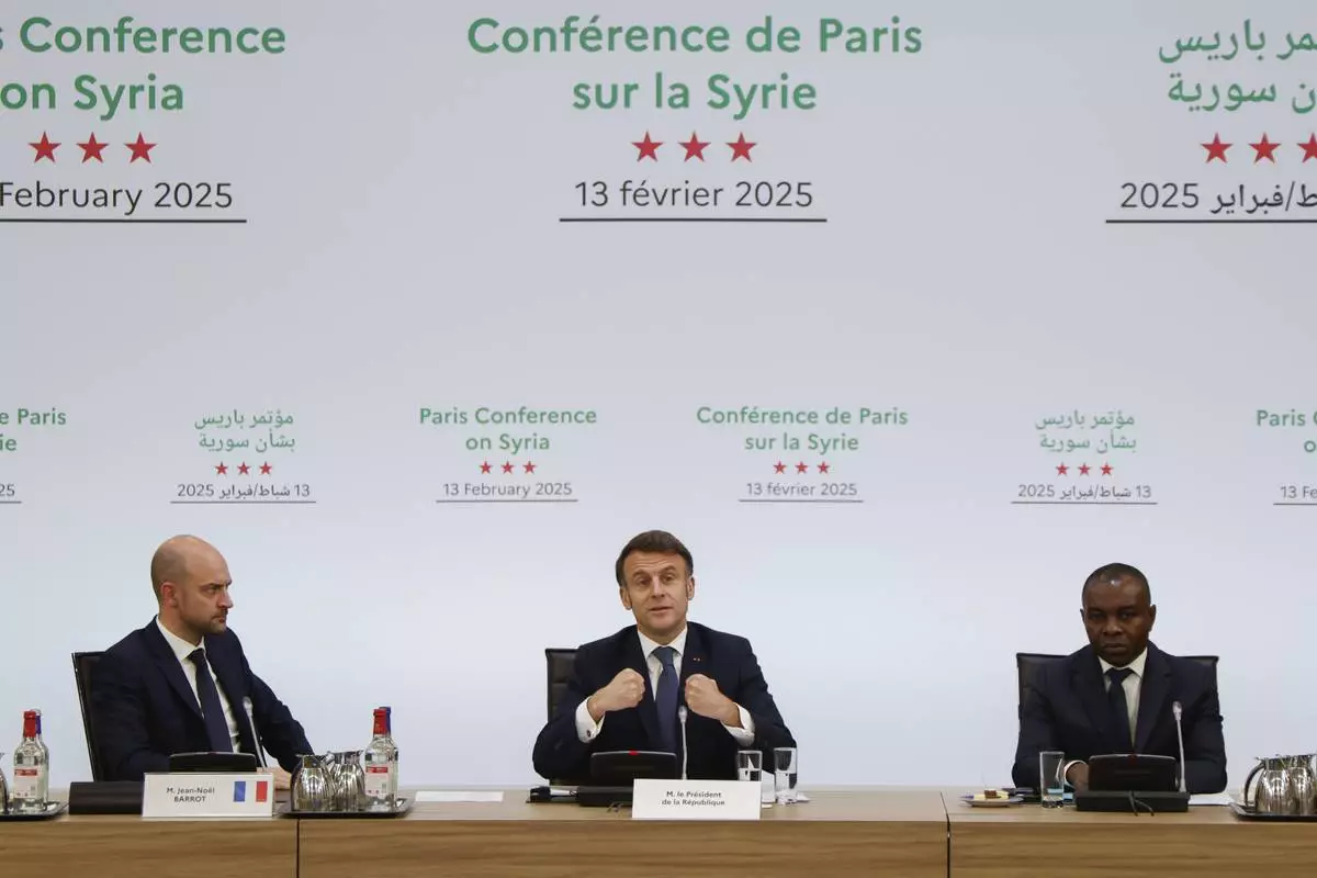 PARIS (AP) — French President Emmanuel Macron urged Syria's interim government to cooperate with a U.S.-led coalition fighting against extremist groups in that region as he hosted a conference Thursday on the Mideast country's future.