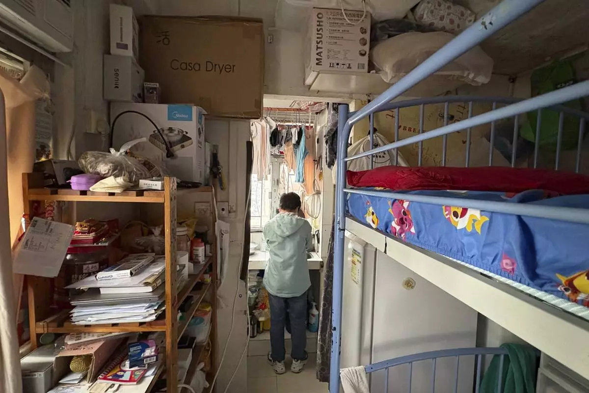 HONG KONG (AP) — Jimmy Au’s world shrinks to about the size of a parking space whenever she gets home.