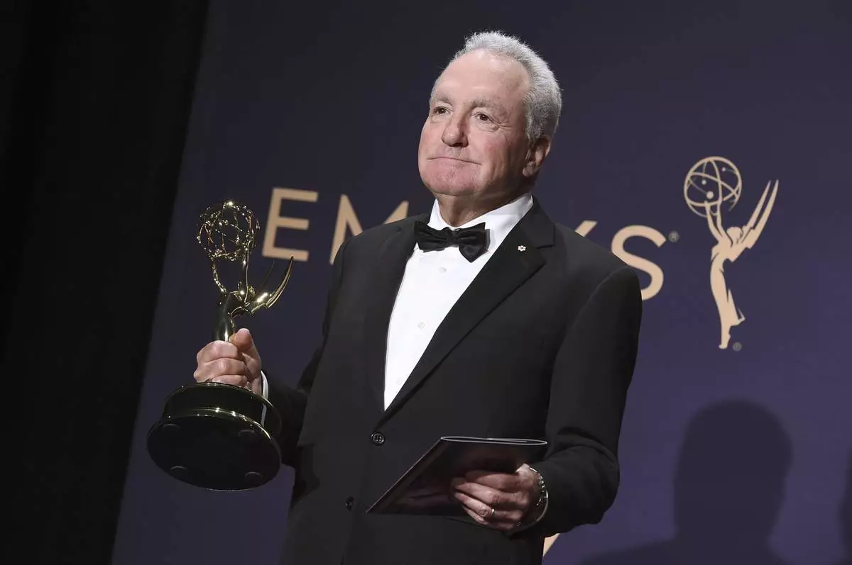 FILE - Lorne Michaels poses in the press room with the award for outstanding variety sketch series for "Saturday Night Live" at the 71st Primetime Emmy Awards on Sunday, Sept. 22, 2019, in Los Angeles. (Photo by Jordan Strauss/Invision/AP, File)