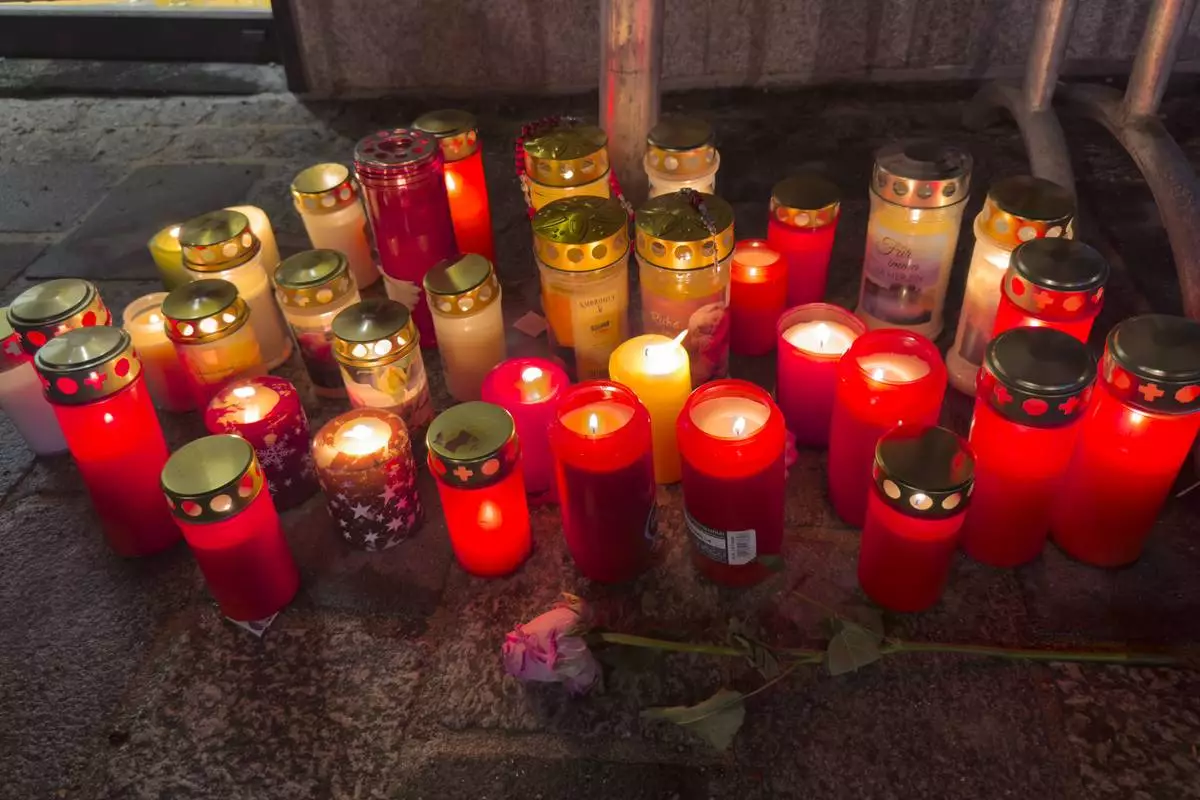 Residents began placing candles at the site of the attack in the city of about 60,000 inhabitants. A group of young people who knew the boy who died in attack gathered at the crime scene on Sunday morning to mourn and tearfully light candles, local media reported.