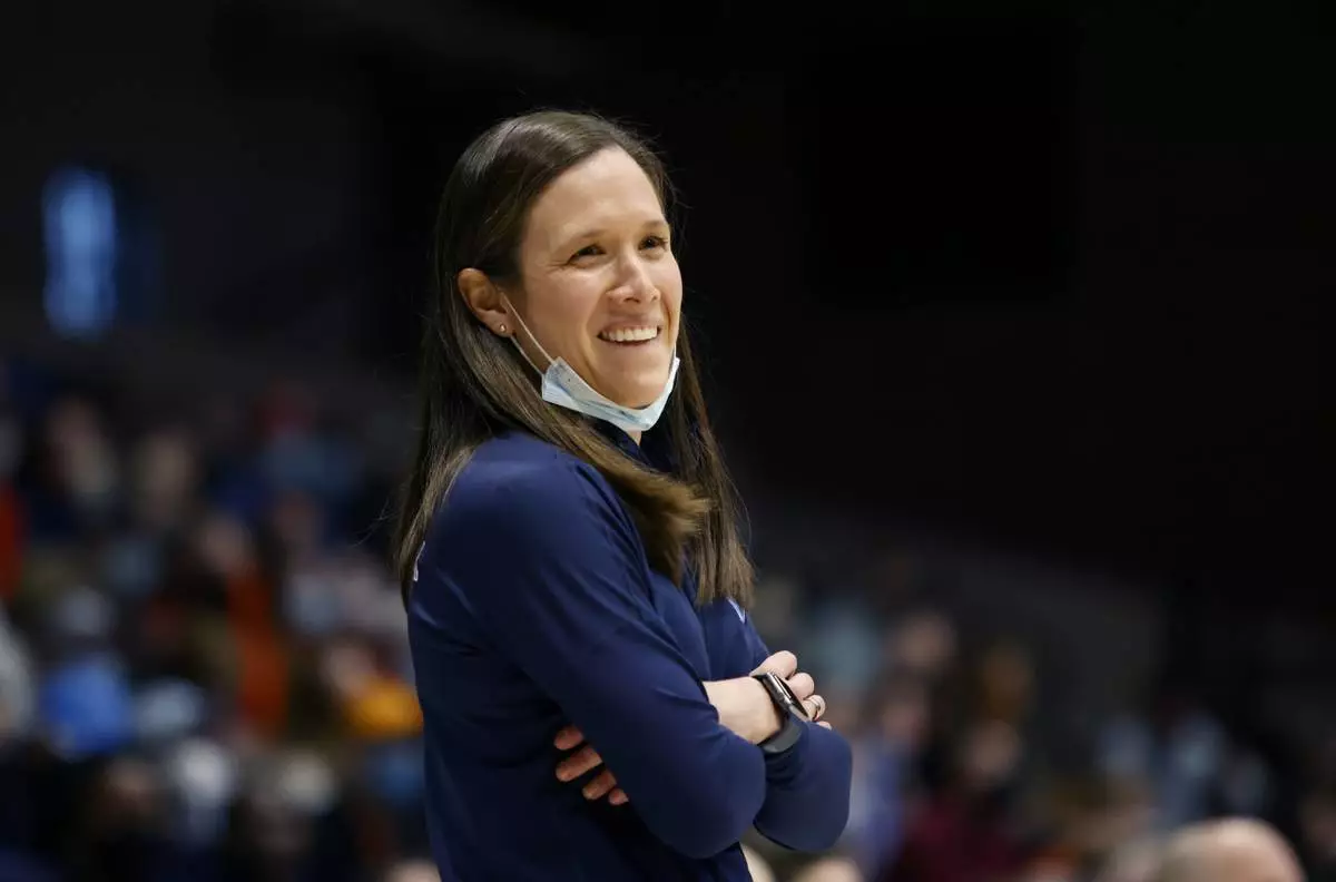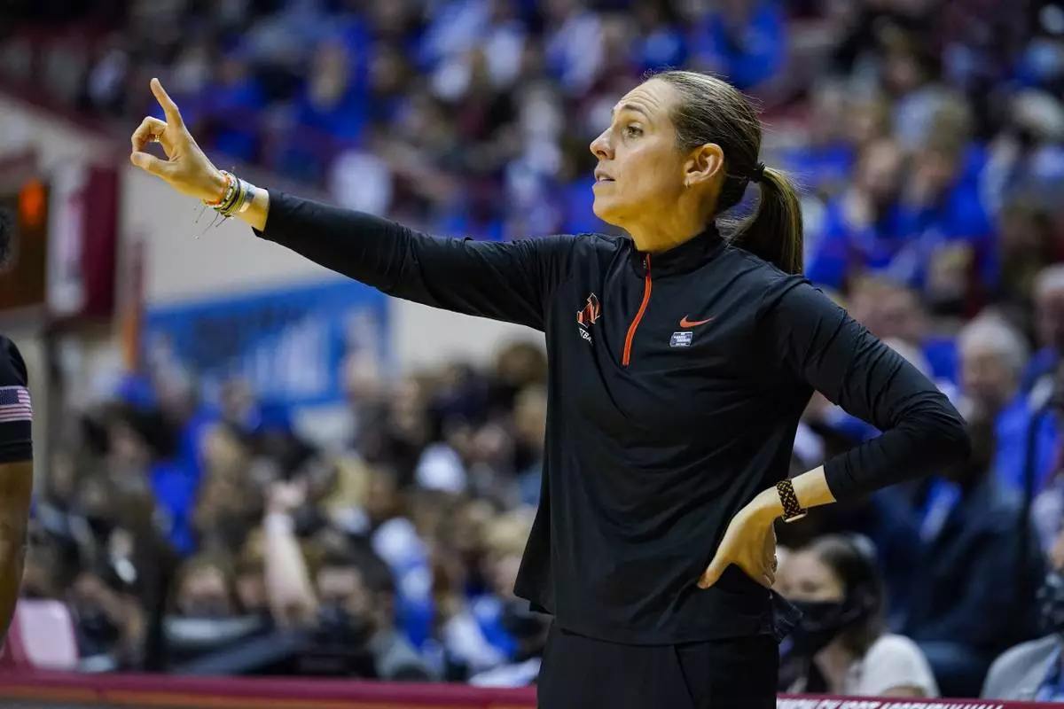 FILE - Princeton head coach Carla Berube calls a play for her team in the first half of a college basketball game against Kentucky in the first round of the NCAA tournament in Bloomington, Ind., March 19, 2022. (AP Photo/Michael Conroy, File)