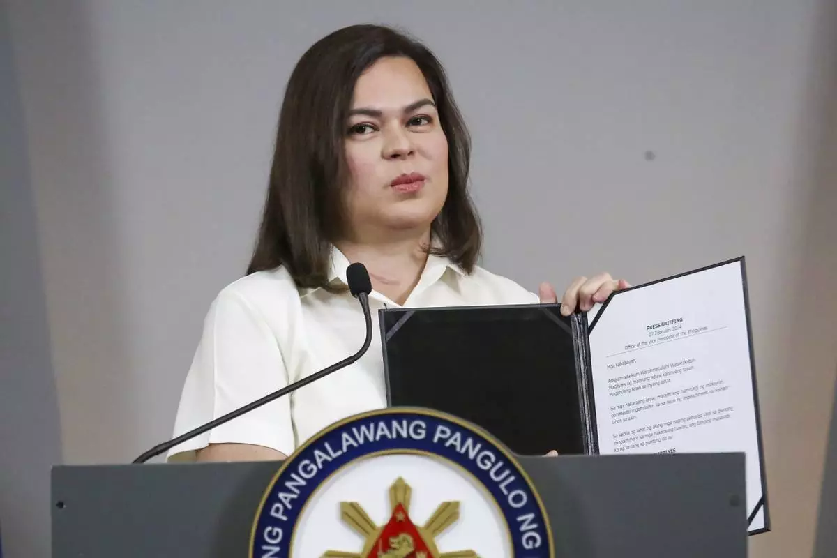 She was also accused of misusing intelligence funds as vice president and as education secretary before she has resigned from that position as her alliance with the president crumbled last year. She has not publicly provided a detailed response to accusations of graft and corruption.
