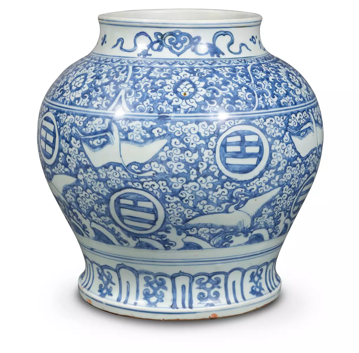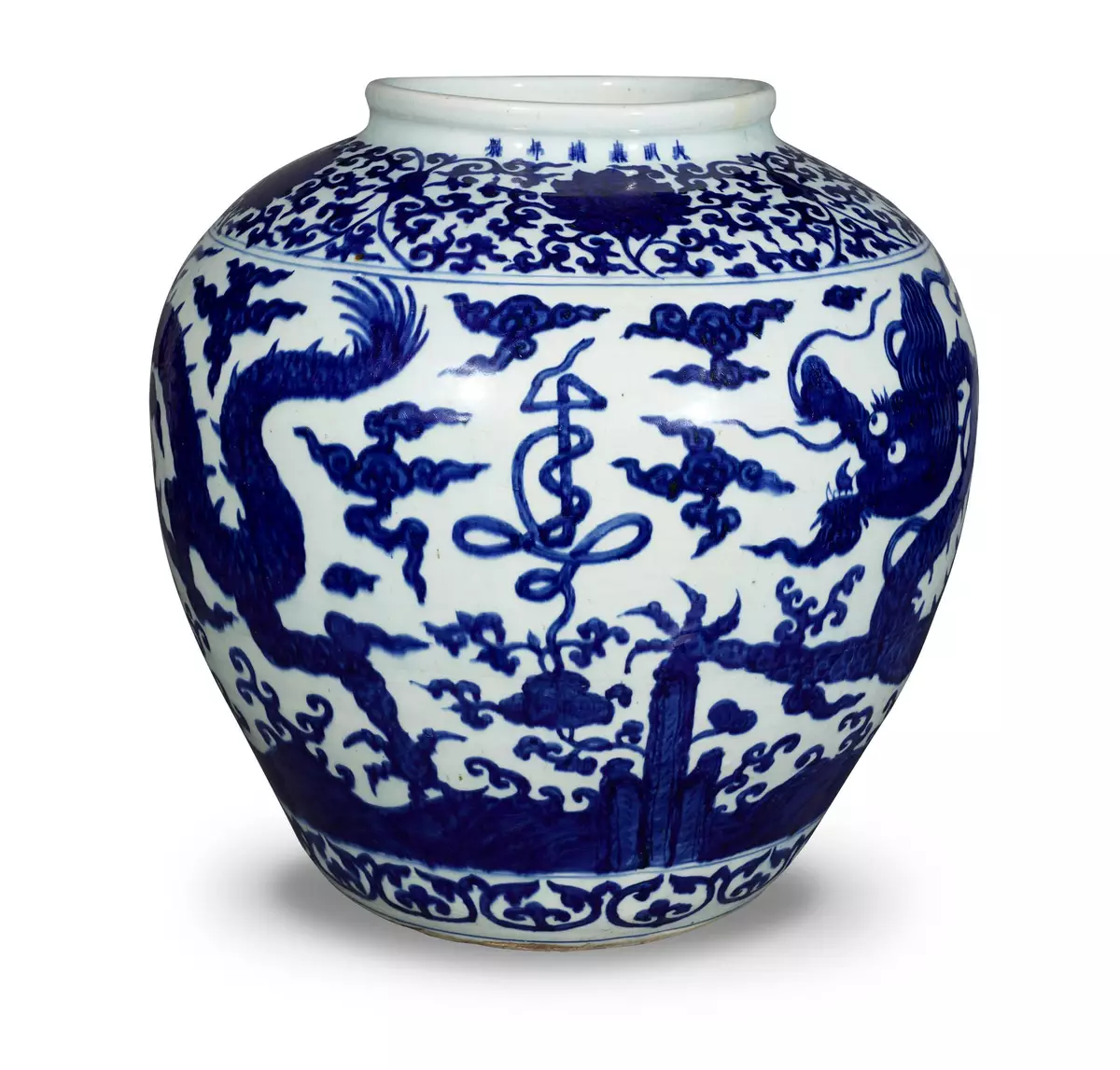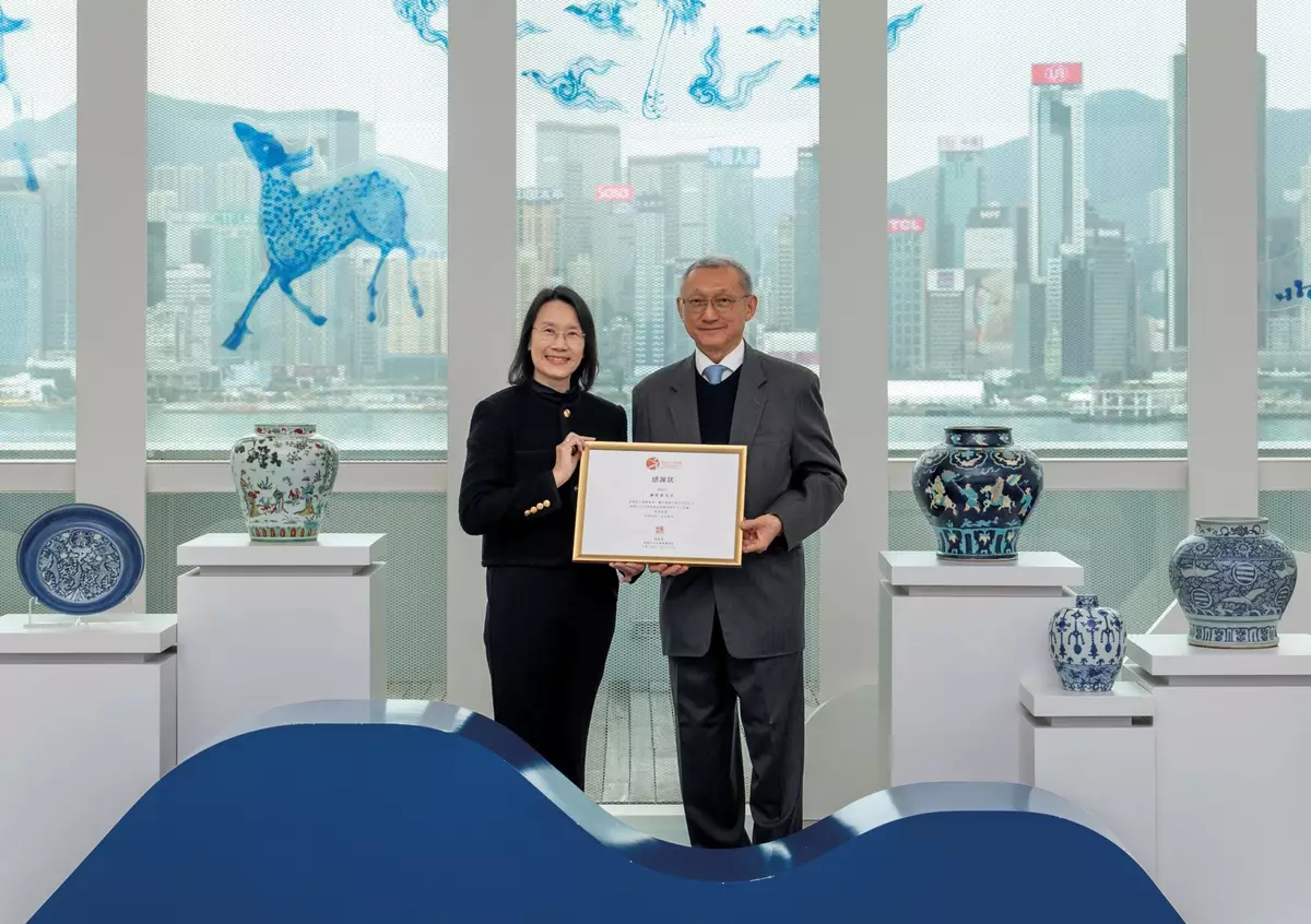 Since 2018, Mr Cheung has made 16 donations to the HKMoA, totalling more than 340 Chinese artefacts and paintings. He has generously shared these cultural treasures with the public, enriching the museum's collections and providing valuable materials for the study and promotion of Chinese art. The latest donated artefacts were displayed at the "Eternal Enlightenment: the Virtual World of the Jiajing Emperor" exhibition held at the HKMoA in 2022. Among them is the jar with clouds, dragons and shou characters design in underglaze blue, which is notably large in size and difficult to fire. Between a pair of dragons in motion, a "shou" character is depicted in cursive script, the continuous single stroke of which symbolises longevity and is a common motif during the Jiajing period of the Ming dynasty. The jar exhibits a lush and dense blue tone that carries a tinge of purple, demonstrating the distinctive characteristics of porcelain from that era. These artefacts not only exemplify exquisite craftsmanship but also bear witness to the artistic characteristics and cultural landscape of the late Ming era, holding significant historical and artistic value.