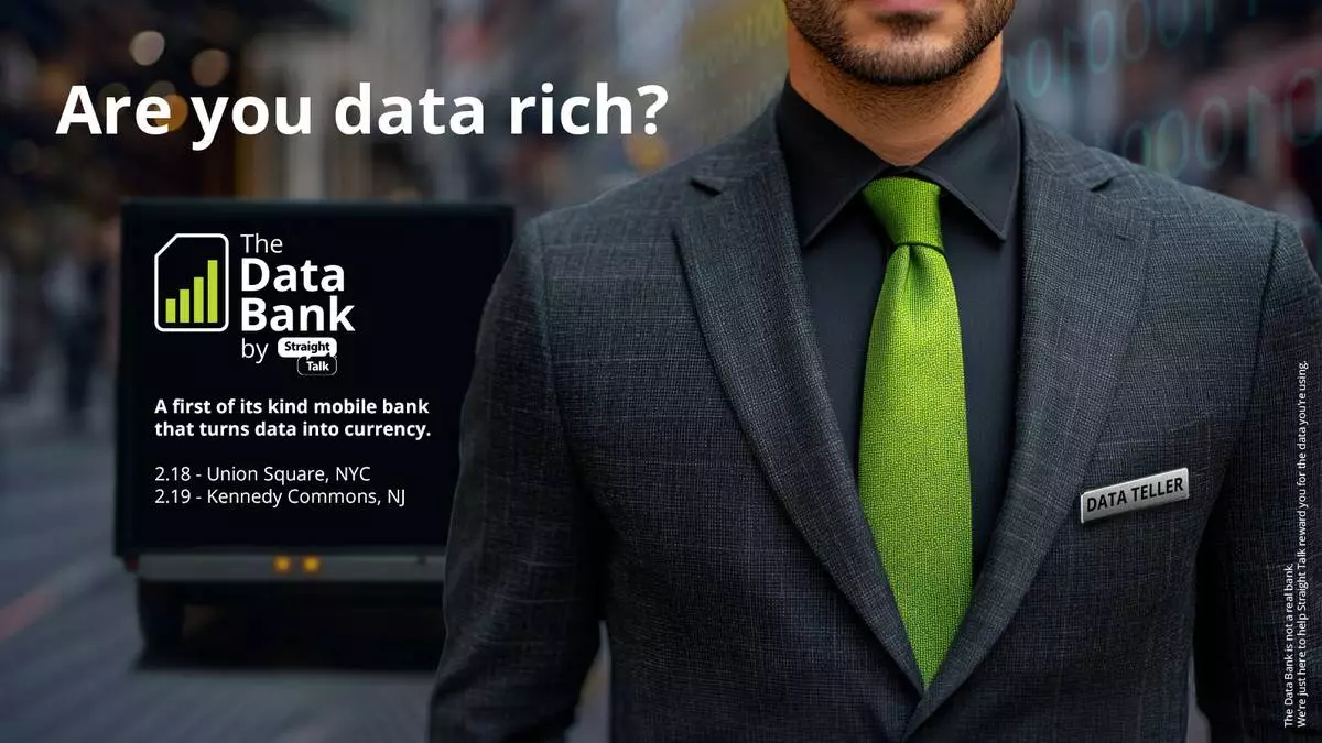 Straight Talk Wireless, a leading prepaid brand covered by Verizon's 5G network and sold at Walmart, is launching The Data Bank by Straight Talk, a limited-time event that turns mobile data usage into real financial rewards. Taking place in Union Square Park in New York City on February 18 and Kennedy Commons in East New Jersey on February 19, The Data Bank brings attention to the exceptional value provided by Straight Talk’s unlimited data plans by giving customers the opportunity to check their data usage and be rewarded with a gift card through an interactive, bank-like experience.