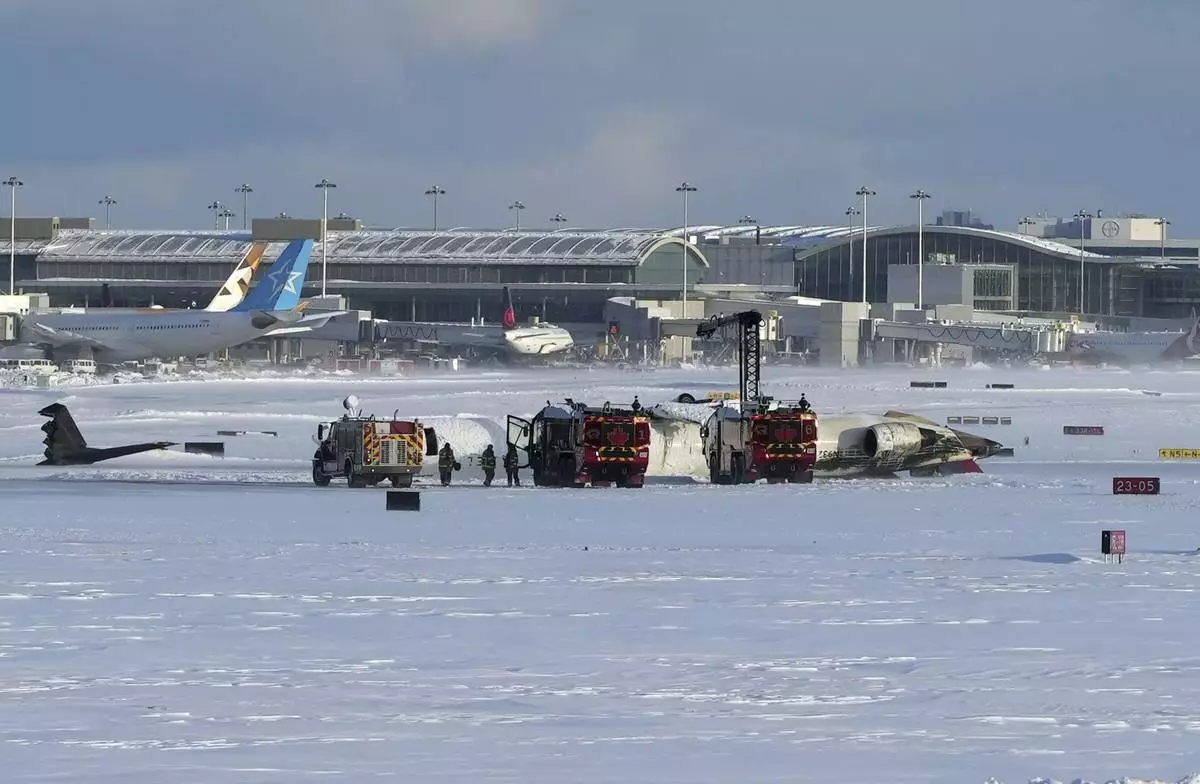A Delta Air Lines plane heading from Minneapolis to Toronto crashed at Toronto's Pearson Airport, Monday Feb. 17, 2025. (Teresa Barbieri/The Canadian Press via AP)