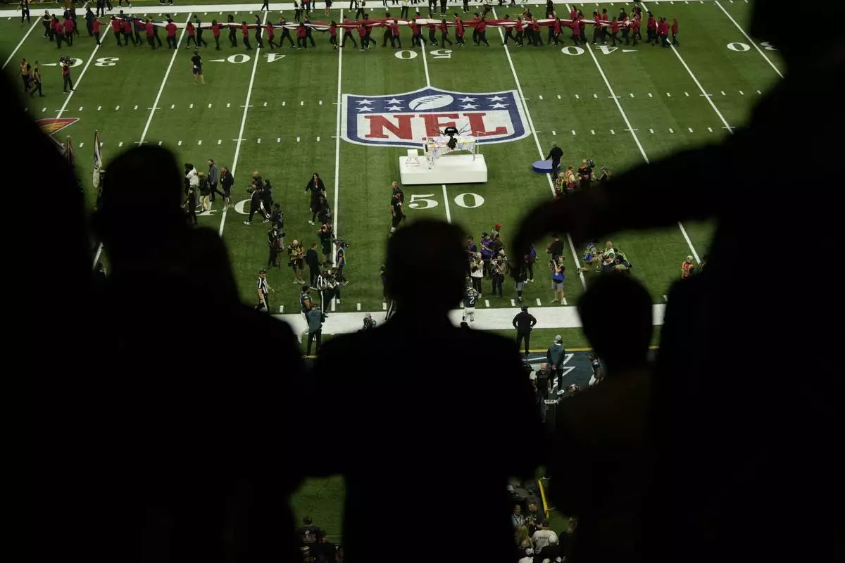 President Donald Trump, center, attends the NFL Super Bowl 59 football game between the Philadelphia Eagles and the Kansas City Chiefs, Sunday, Feb. 9, 2025, in New Orleans. (AP Photo/Ben Curtis)