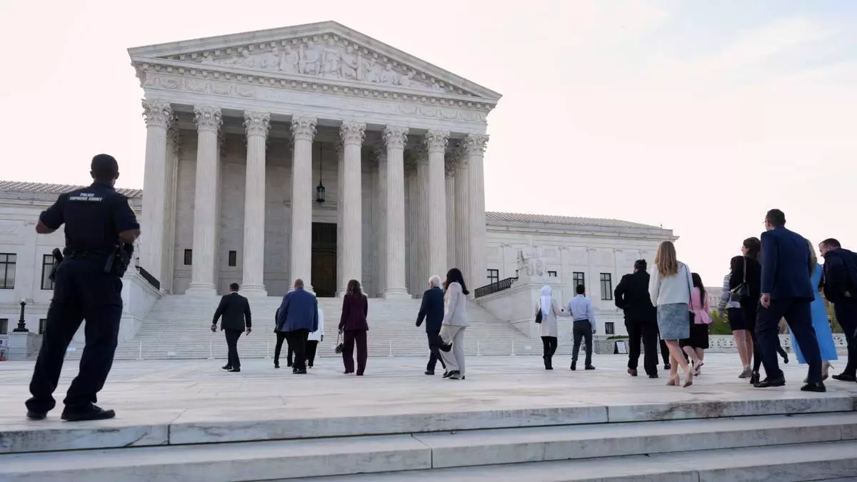 People arrive to walk inside the U.S. Supreme Court, on Capitol Hill in Washington, Wednesday, April 1, 2026. The Supreme Court justices will hear oral arguments today on whether President Donald Trump can deny citizenship to children born to parents who are in the United States illegally or temporarily. (AP Photo/J. Scott Applewhite)