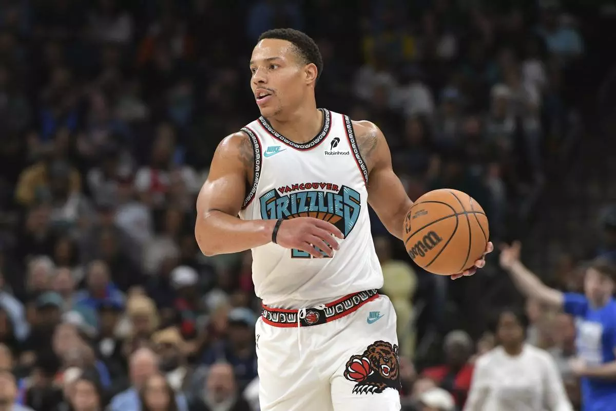 FILE - Memphis Grizzlies guard Desmond Bane handles the ball in the first half of an NBA basketball game against the Oklahoma City Thunder, Feb. 8, 2025, in Memphis, Tenn. (AP Photo/Brandon Dill, File)