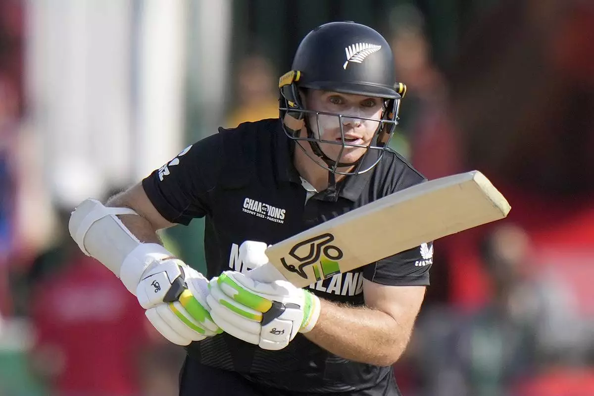New Zealand's Tom Latham bats during the ICC Champions Trophy cricket match between Pakistan and New Zealand, in Karachi, Pakistan Wednesday, Feb. 19, 2025. (AP Photo/Anjum Naveed)