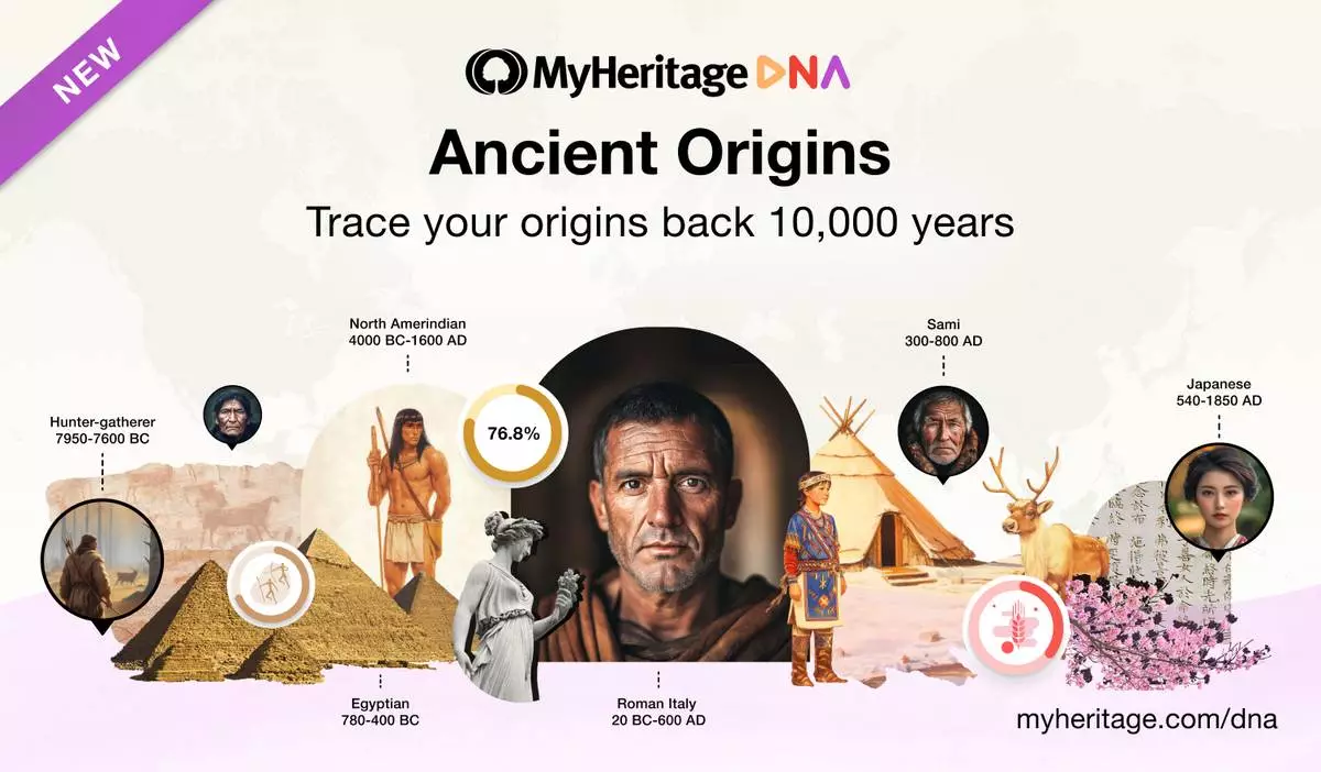 MyHeritage, the leading global platform for family history and DNA testing, announced today the release of Ancient Origins, a major new product that complements the company’s DNA ethnicity reports. Ancient Origins goes back further in time, thanks to the latest developments in archaeogenetics, allowing MyHeritage DNA customers to trace their origins up to 10,000 years into the past and discover the ancient populations from which they descend, such as Imperial Romans, Norse Vikings, Phoenicians, and Ancient Egyptians. MyHeritage is now the only major genealogy service to offer such high-resolution ancient DNA ethnicity analysis.