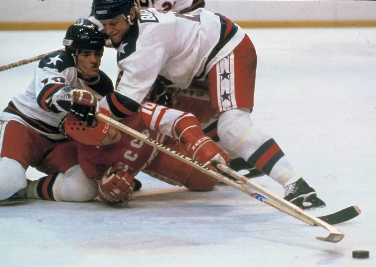 Made up of college players who seemed no match for the heavily favored, professional Soviet Union, the U.S. rallied from 1-0, 2-1 and 3-2 deficits with Mark Johnson and Mike Eruzione scoring to win 4-3 and produce the “Miracle on Ice” in Lake Placid, New York. The Americans then beat Finland to take home Olympic gold.
