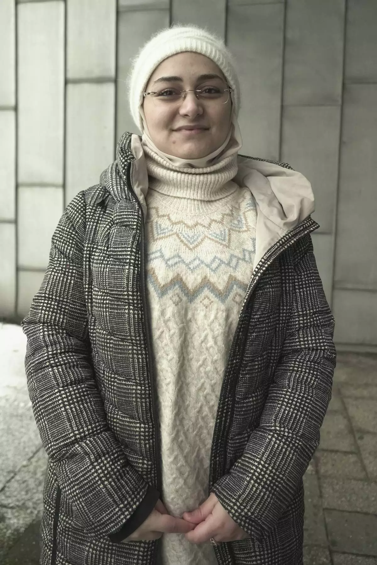 Logeen Faour Shahna, 24 years old, coming to Germany in 2015 from Syria, pose for a photo during an interview with the Associated Press, in Berlin, Germany, Thursday, Feb. 13, 2025. (AP Photo/Pietro De Cristofaro)