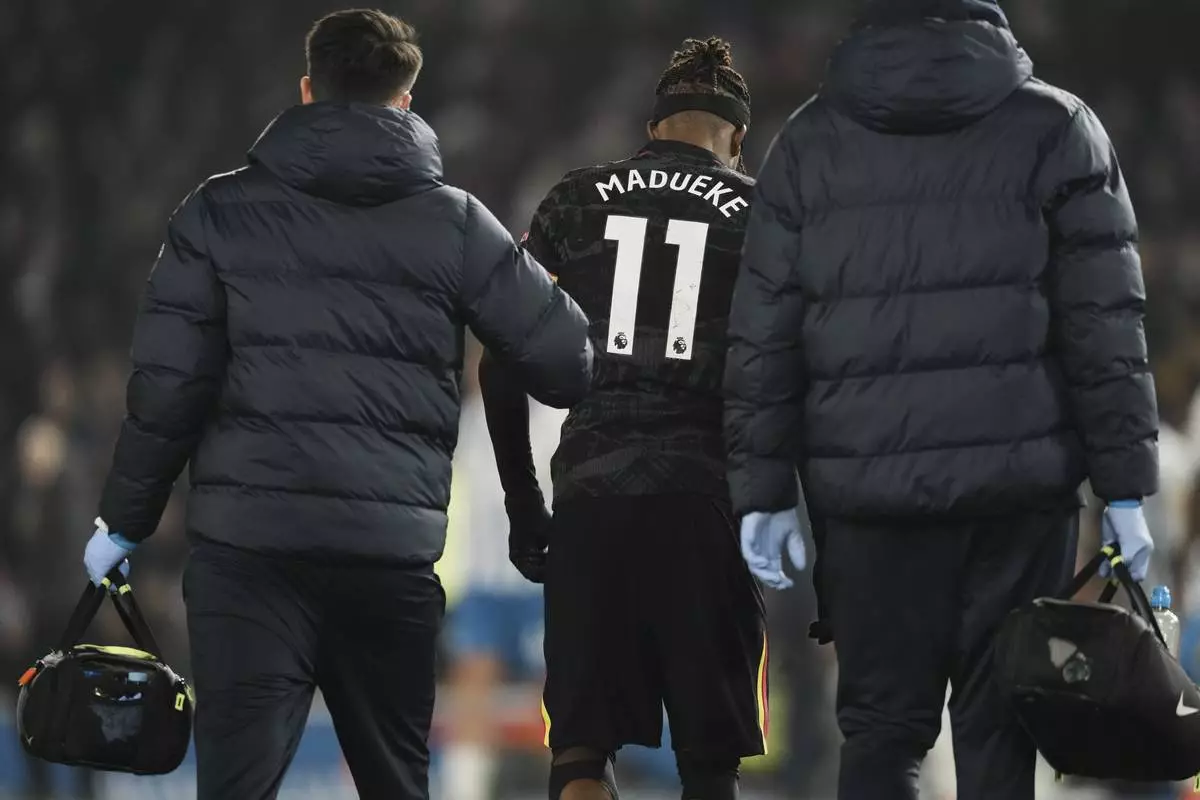 LONDON (AP) — Chelsea is set to be without injured winger Noni Madueke for its next four Premier League games as it makes a push for a top-four finish.