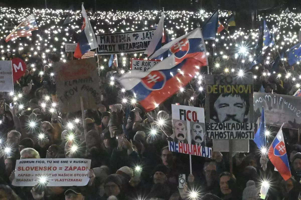 The crowds at rallies in 47 towns and cities at home and 16 abroad, according to organizers, demanded Fico’s resignation. About 10,000 protesters chanted “Resign, resign,” at Freedom Square in Bratislava.