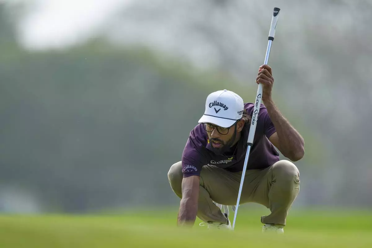 Akshay Bhatia, of the United States, lines up his putt on the 15th green during the second round of the Mexico Open golf tournament in Puerto Vallarta, Mexico, Friday, Feb. 21, 2025. (AP Photo/Fernando Llano)