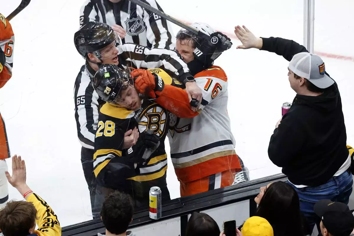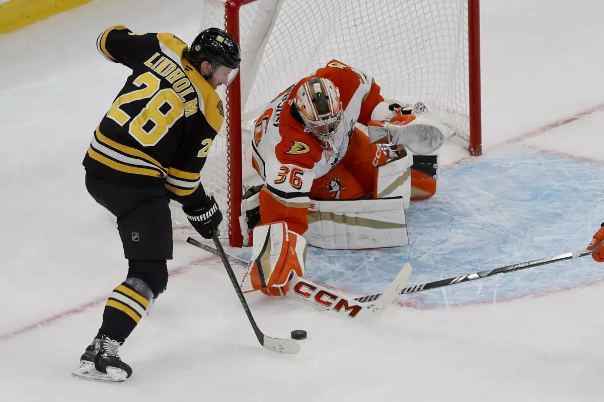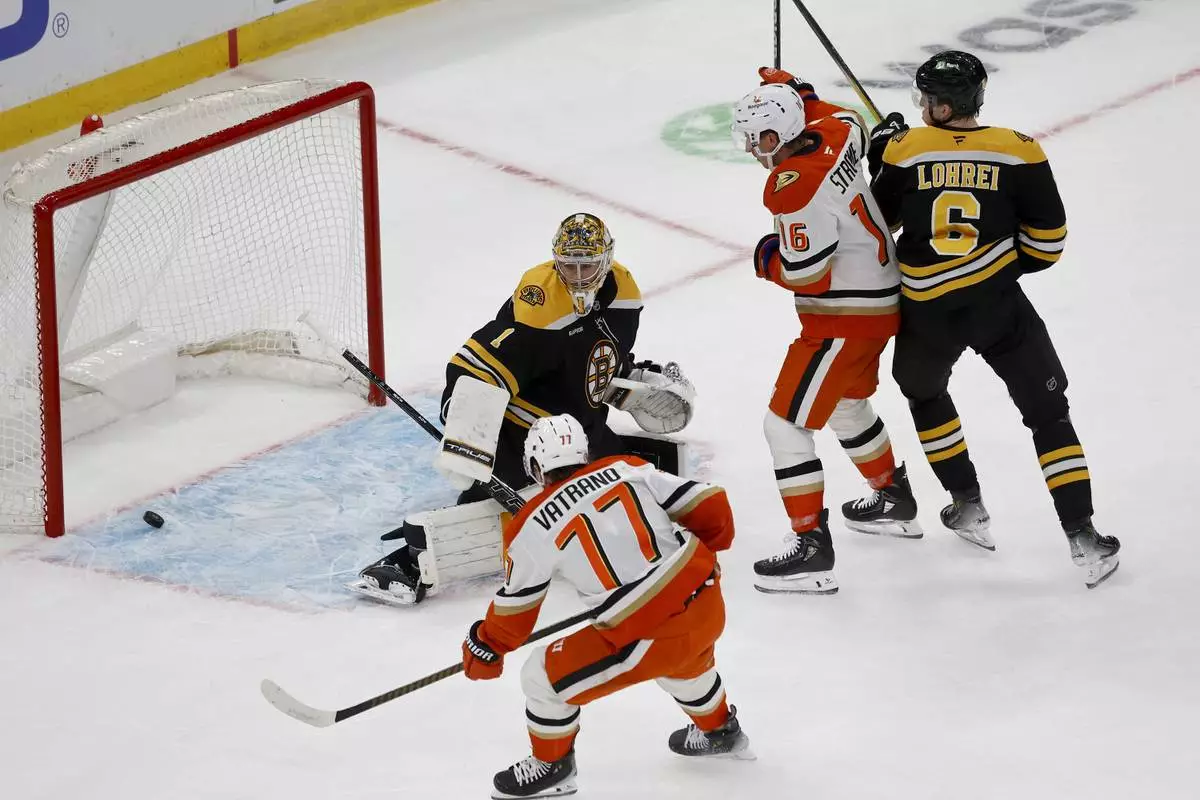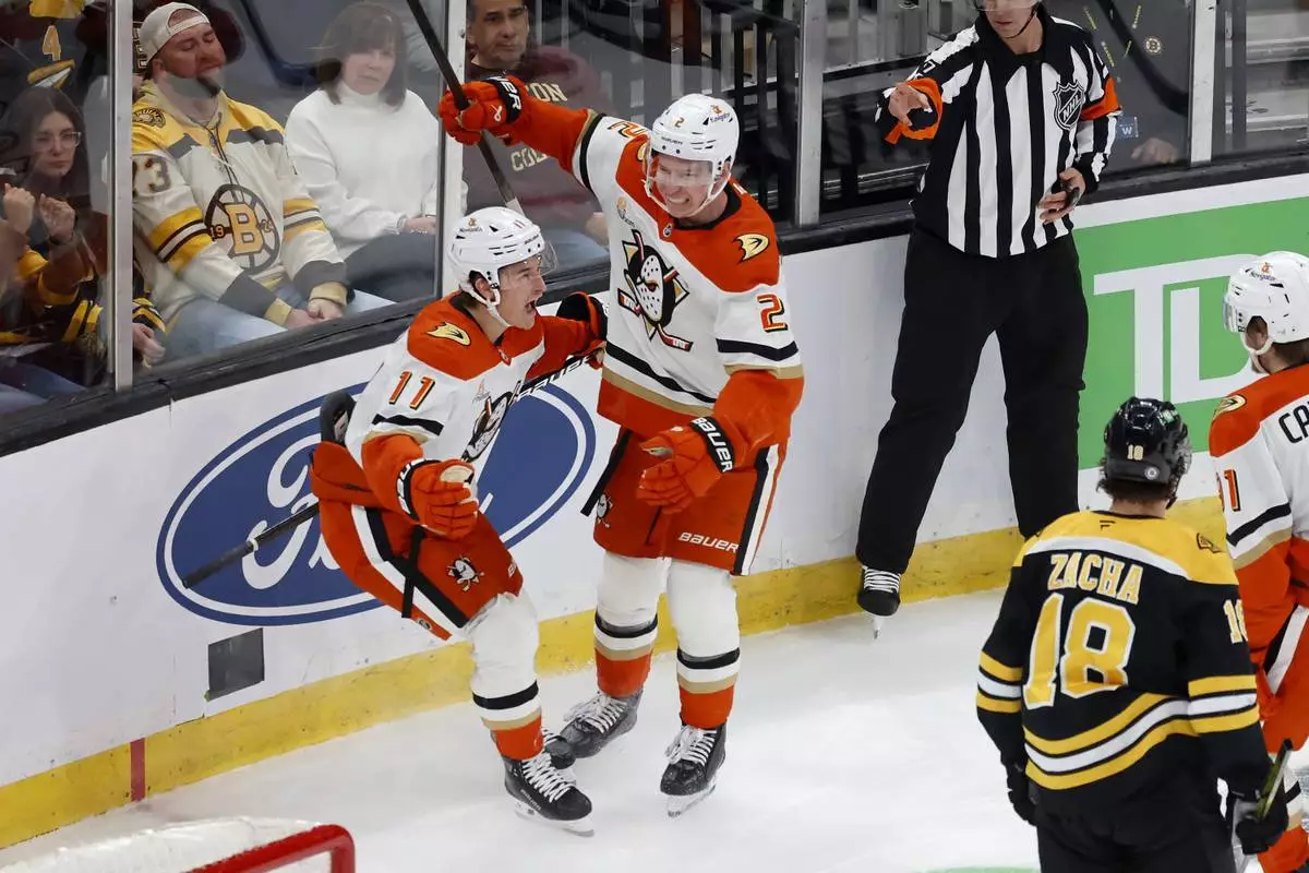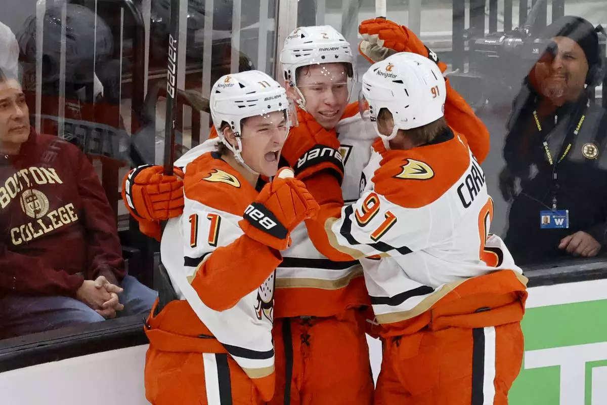 BOSTON (AP) — Leo Carlsson scored with 1:21 left in overtime to give Anaheim a 3-2 victory over the Boston Bruins on Saturday night and extend the Ducks' winning streak to four straight games.