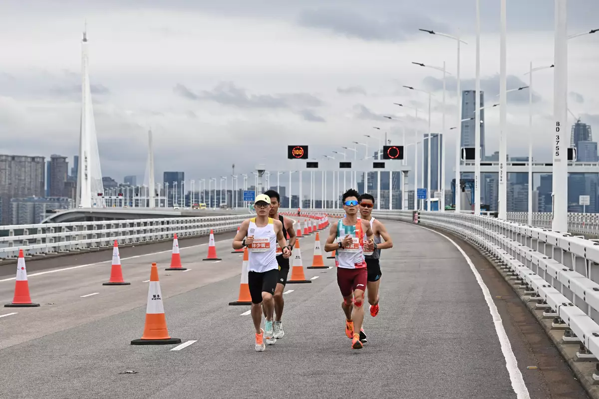 The marathon test event took place in this morning. Setting off from the Shenzhen Bay Sports Center, the runners entered Hong Kong via the Shenzhen Bay Port, ran along the Shenzhen Bay Bridge and Kong Sham Western Highway Viaduct, then turned back to the Shenzhen Bay Port through the same route, and finally ended at the Shenzhen Bay Sports Center. A total of 38 athletes participatedincluding 3 male athletes and 3 female athletes from Hong Kong in the races. Zhao Chaochuan, from Yunnan, was crowned the Men's race championship in a time of 2 hours, 17 minutes and 17 seconds, while Chen Liqin from Guangdong won the Women's race championship, finishing at 2 hours, 44 minutes and 44 seconds. All the six Hong Kong athletes completed the races smoothly. Among them, Leanne Szeto Shiu-yan won the third place in 2 hours, 47 minutes and 20 seconds.