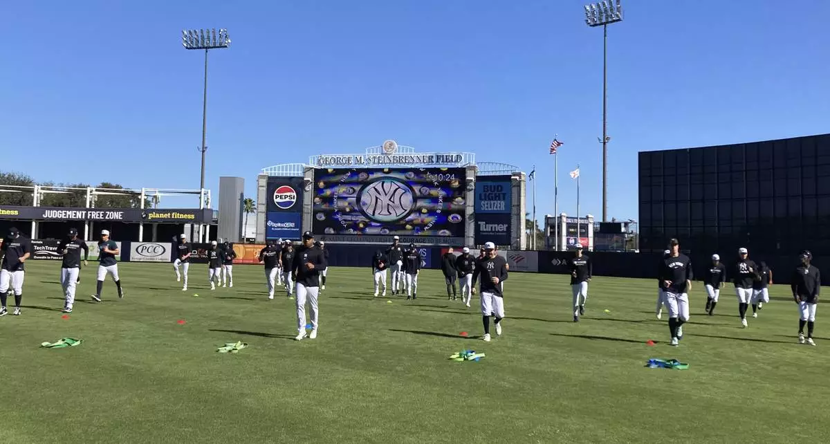 The New York Yankees start their first full-squad workout of the year at George M. Steinbrenner Field in Tampa, Fla., Monday, Feb. 17, 2025. (AP Photo/Ron Blum)