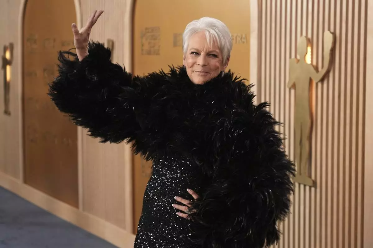 Jamie Lee Curtis arrives at the 31st annual Screen Actors Guild Awards on Sunday, Feb. 23, 2025, at the Shrine Auditorium in Los Angeles. (AP Photo/Chris Pizzello)