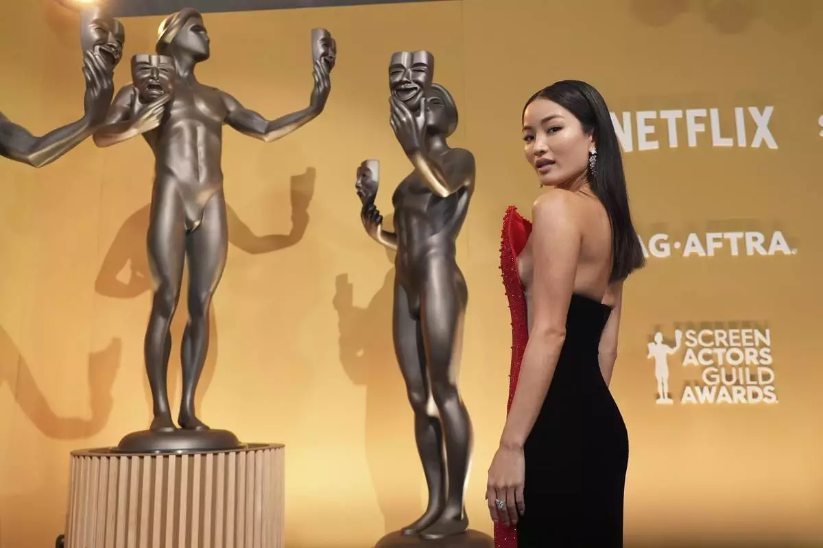Anna Sawai arrives at the 31st annual Screen Actors Guild Awards on Sunday, Feb. 23, 2025, at the Shrine Auditorium in Los Angeles. (AP Photo/Chris Pizzello)