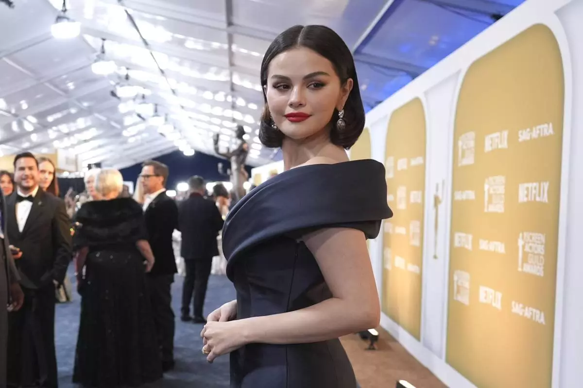 Selena Gomez arrives at the 31st annual Screen Actors Guild Awards on Sunday, Feb. 23, 2025, at the Shrine Auditorium in Los Angeles. (AP Photo/Chris Pizzello)