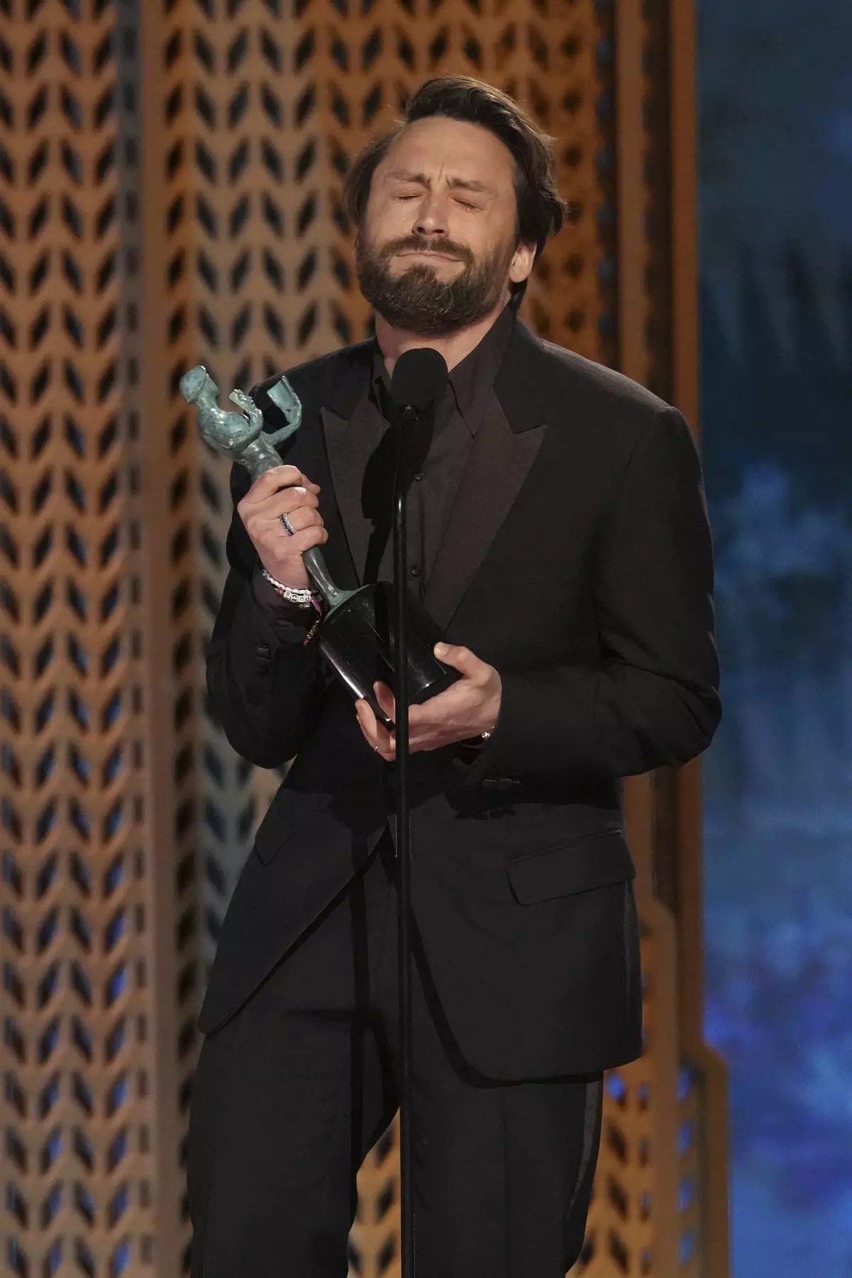 Kieran Culkin accepts the award for outstanding performance by a male actor in a supporting role for "A Real Pain" during the 31st annual Screen Actors Guild Awards on Sunday, Feb. 23, 2025, at the Shrine Auditorium in Los Angeles. (AP Photo/Chris Pizzello)