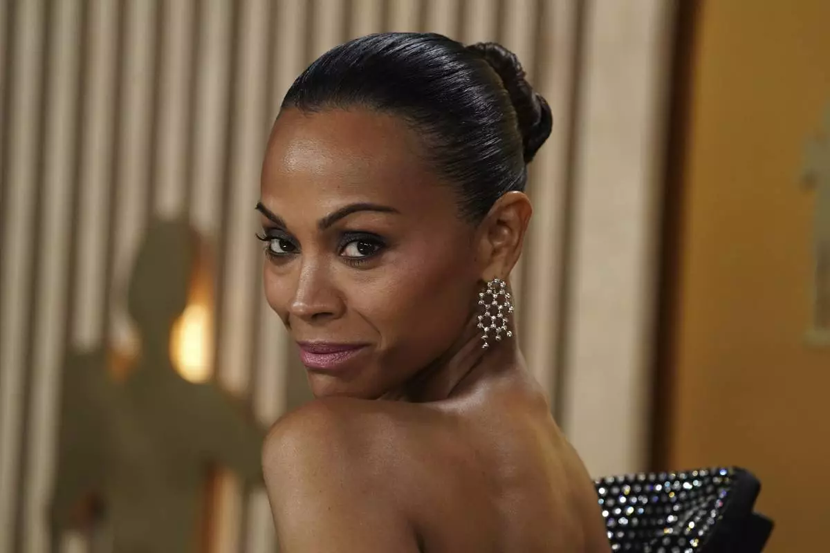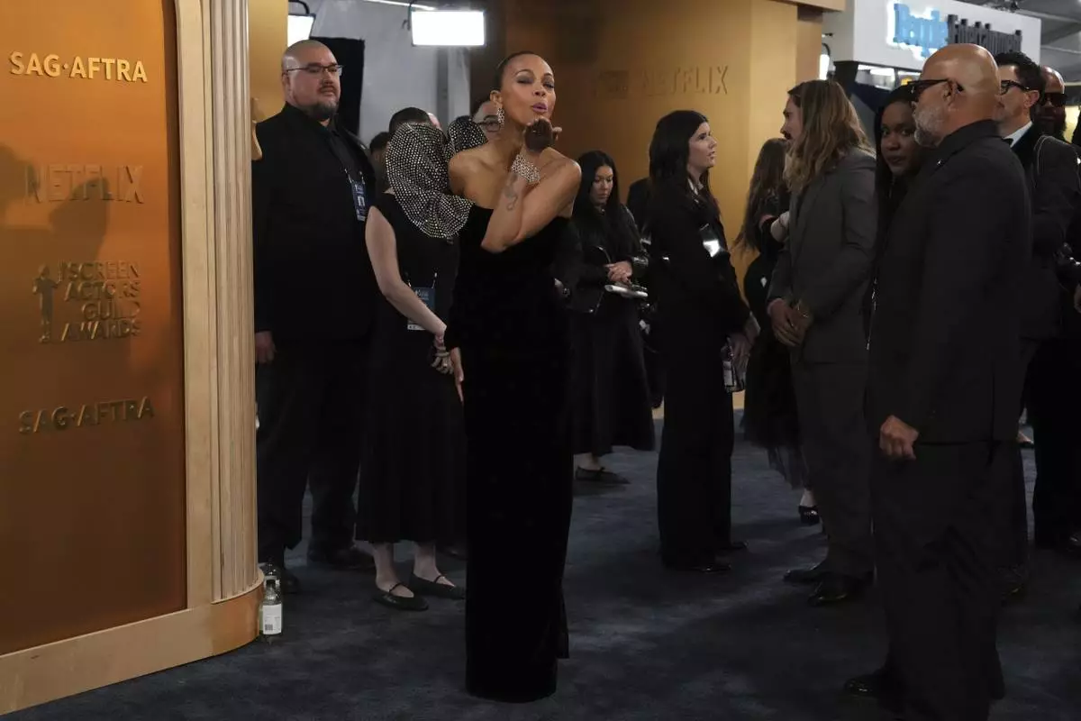 Zoe Saldana arrives at the 31st annual Screen Actors Guild Awards on Sunday, Feb. 23, 2025, at the Shrine Auditorium in Los Angeles. (Photo by Jordan Strauss/Invision/AP)