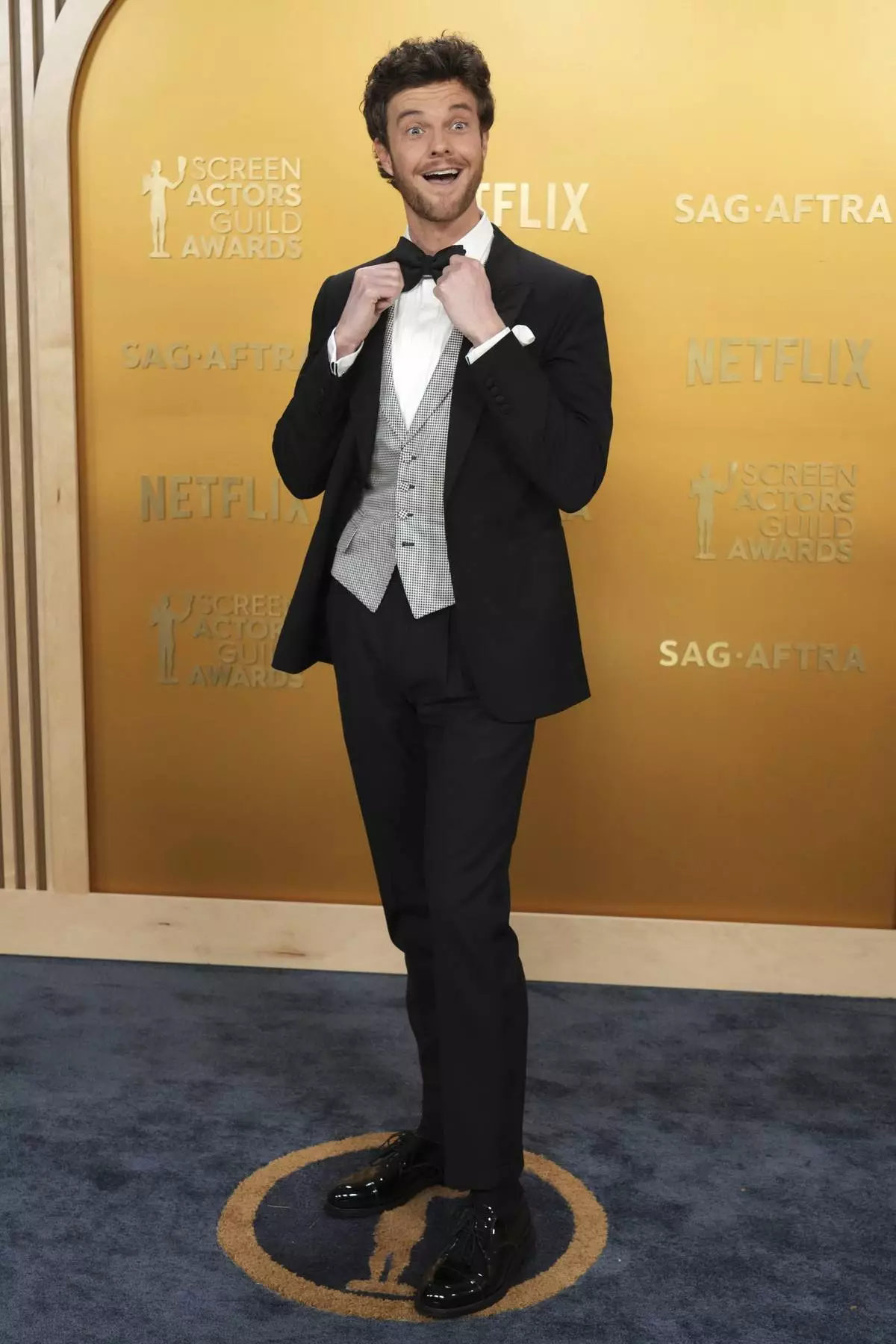 Jack Quaid arrives at the 31st annual Screen Actors Guild Awards on Sunday, Feb. 23, 2025, at the Shrine Auditorium in Los Angeles. (Photo by Jordan Strauss/Invision/AP)