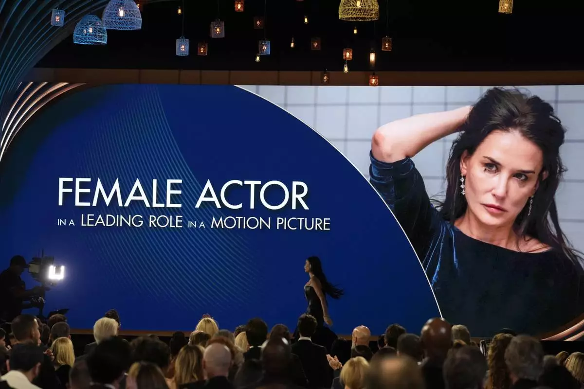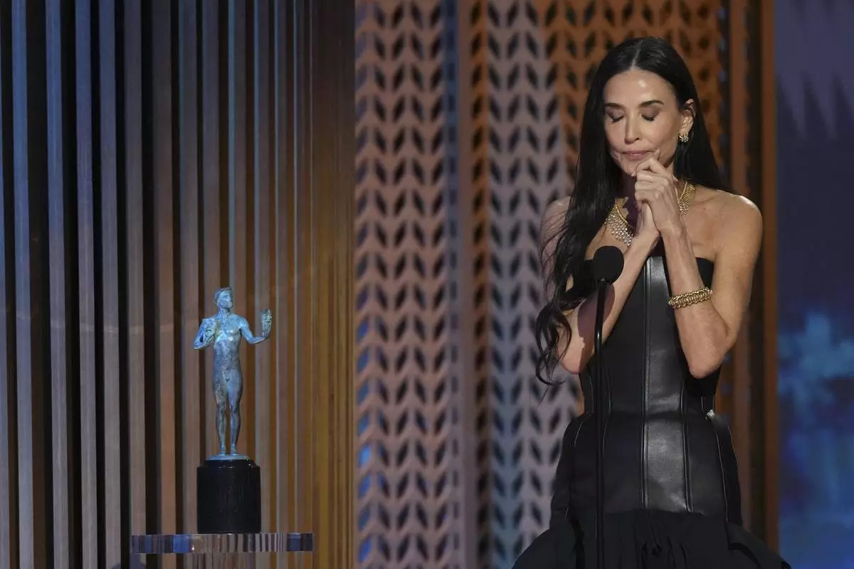 Demi Moore accepts the award for outstanding performance by a female actor in a leading role for "The Substance" during the 31st annual Screen Actors Guild Awards on Sunday, Feb. 23, 2025, at the Shrine Auditorium in Los Angeles. (AP Photo/Chris Pizzello)